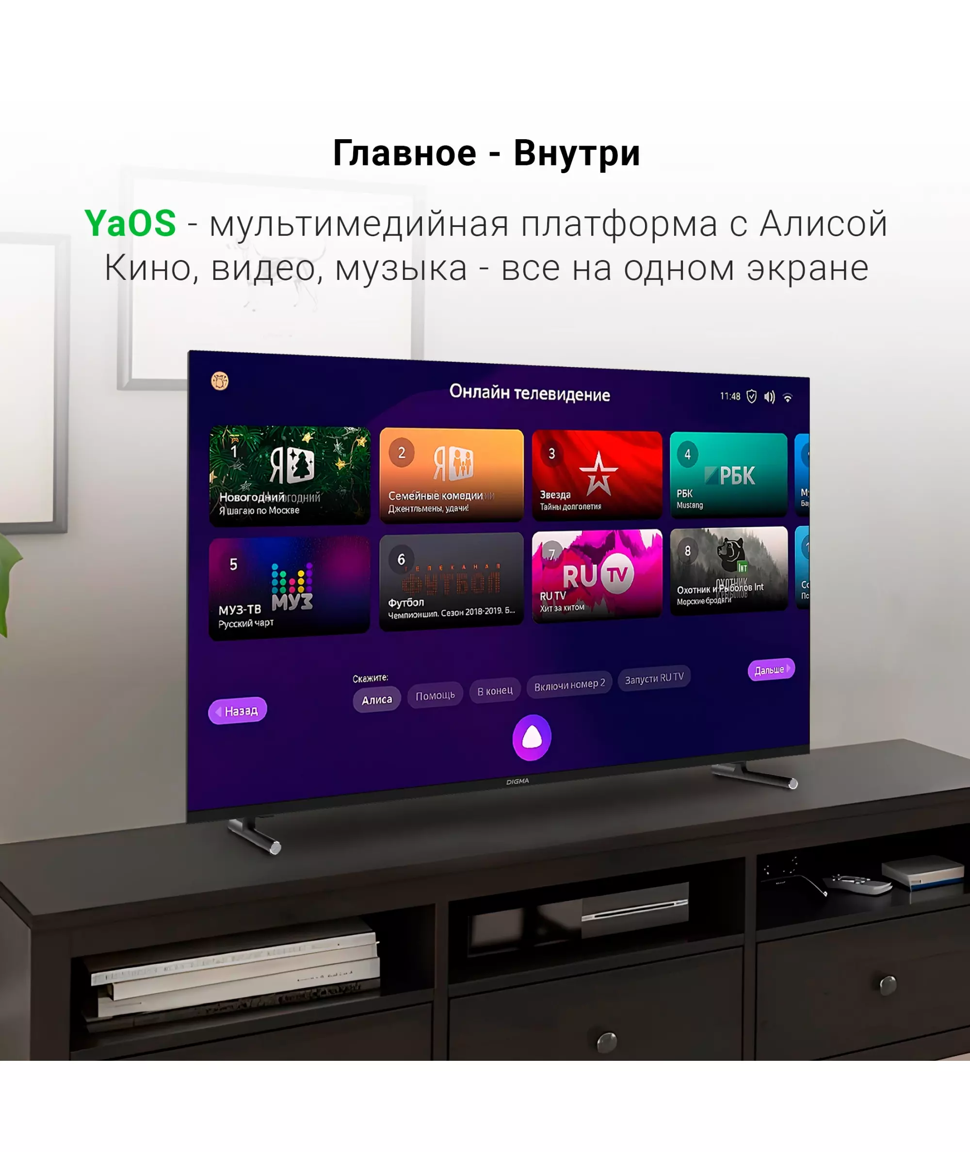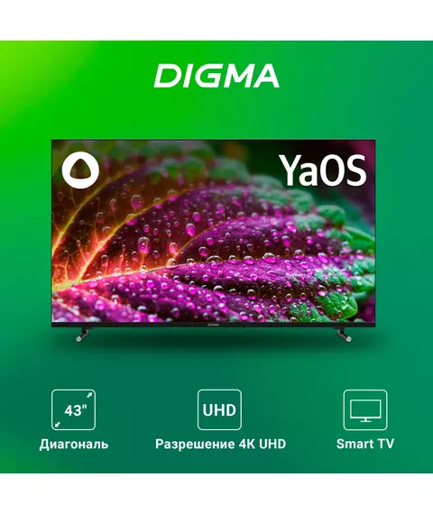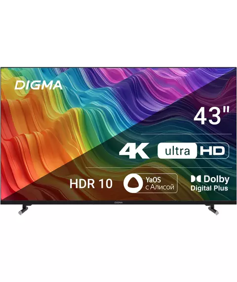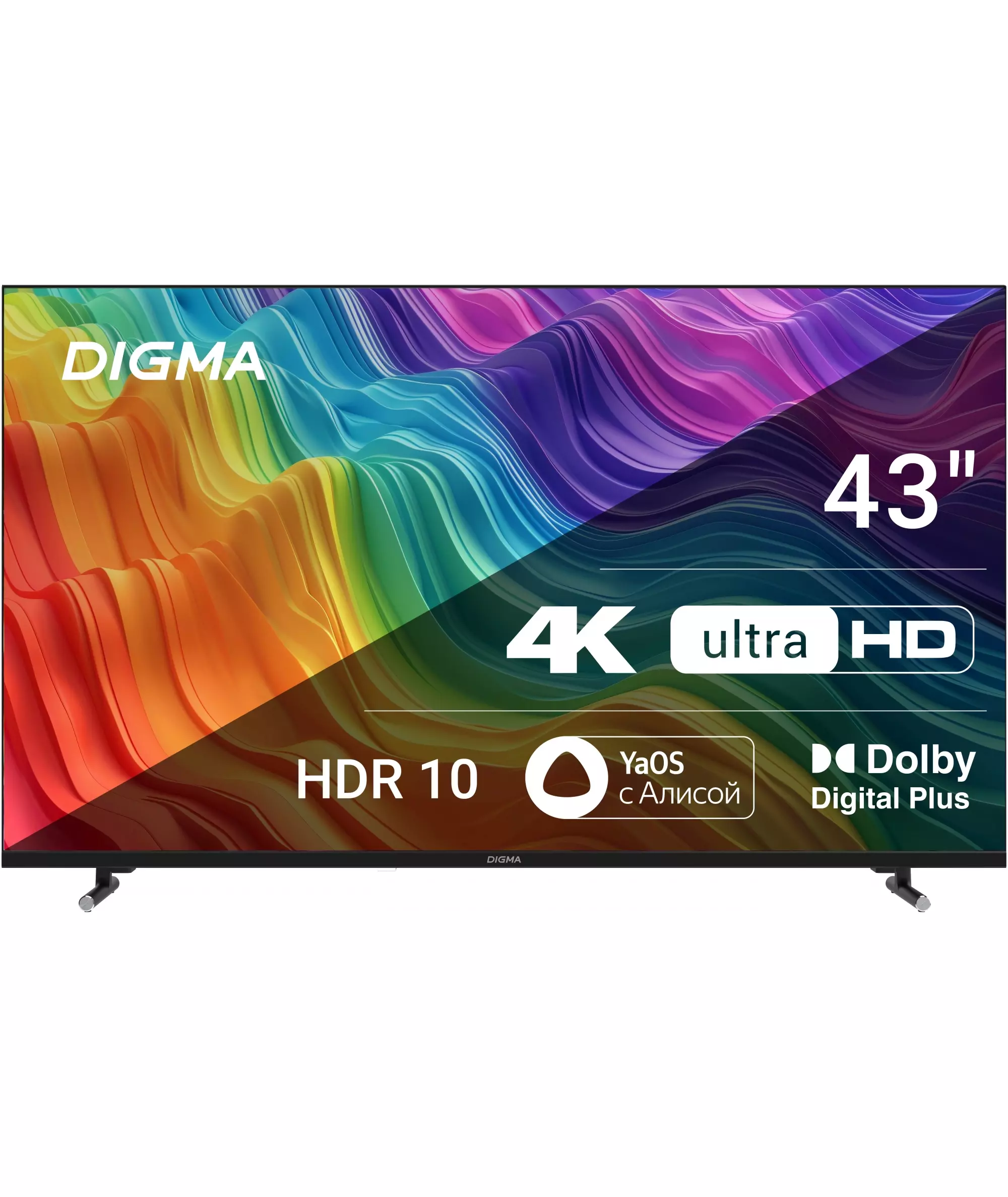 Телевизор LED Digma DM-LED43UBB33 43" Яндекс.ТВ Frameless Metal черный/черный 4K Ultra HD 60Hz DVB-T DVB-T2 DVB-C DVB-S DVB-S2 USB WiFi Smart TV