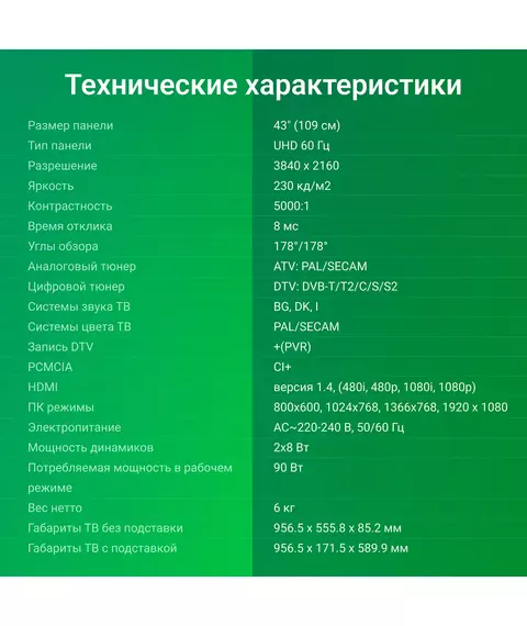 | Размеры без подставки | 956.5x555.8x85.2мм |
