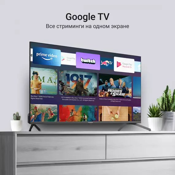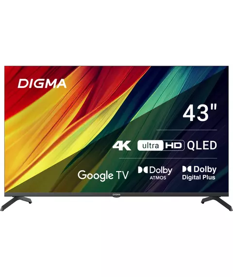 Телевизор Digma DM-LED43UQB31 QLED 43" Google TV Frameless Metal черный/черный 4K Ultra HD 60Hz MEMC DVB-T DVB-T2 DVB-C DVB-S DVB-S2 USB WiFi Smart TV