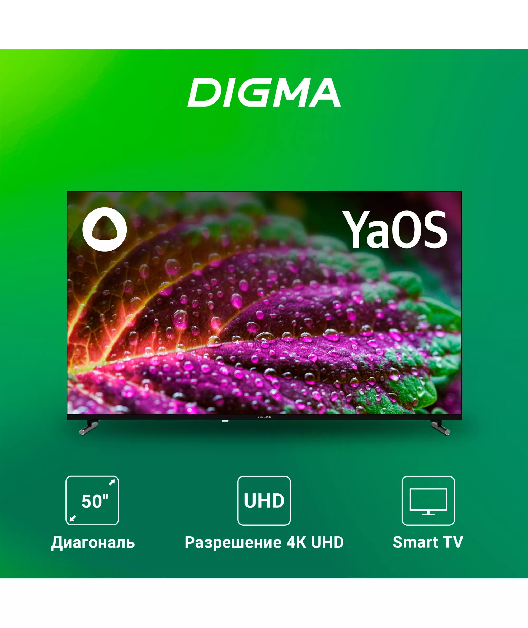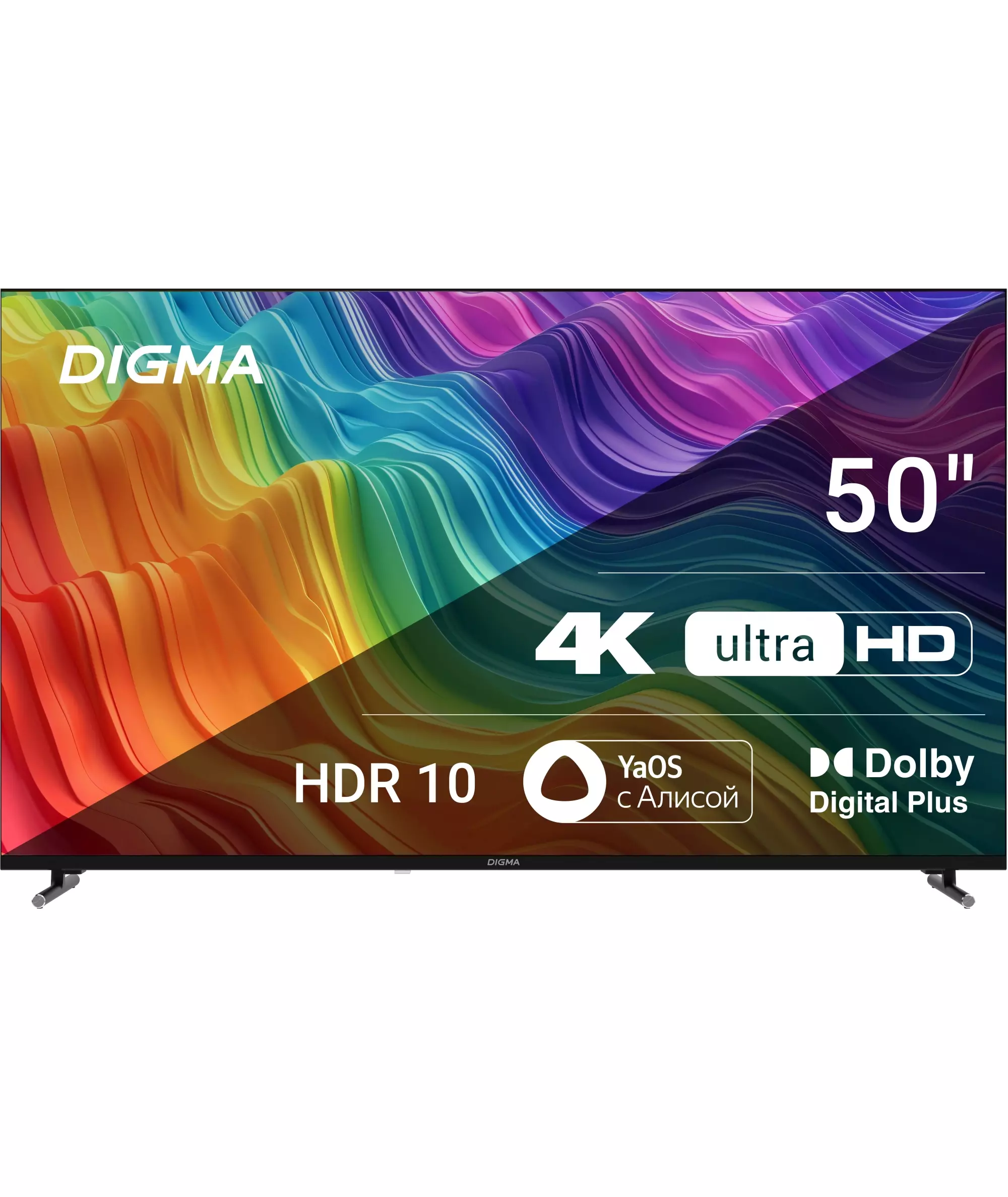 Телевизор Digma DM-LED50UBB33 LED 50" Яндекс.ТВ Frameless Metal черный 4K Ultra HD 60Hz DVB-T DVB-T2 DVB-C DVB-S DVB-S2 USB WiFi Smart TV