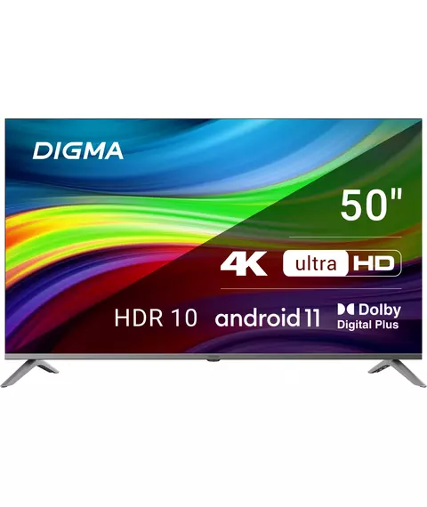 Телевизор Digma DM-LED50UBB41 LED 50" Android TV Frameless Metal темно-серебристый/серебристый 4K Ultra HD 60Hz DVB-T DVB-T2 DVB-C DVB-S DVB-S2 USB WiFi Smart TV