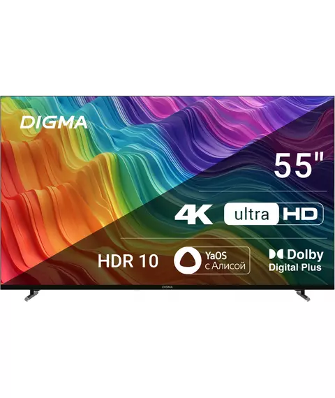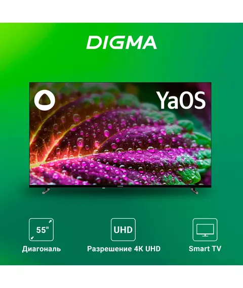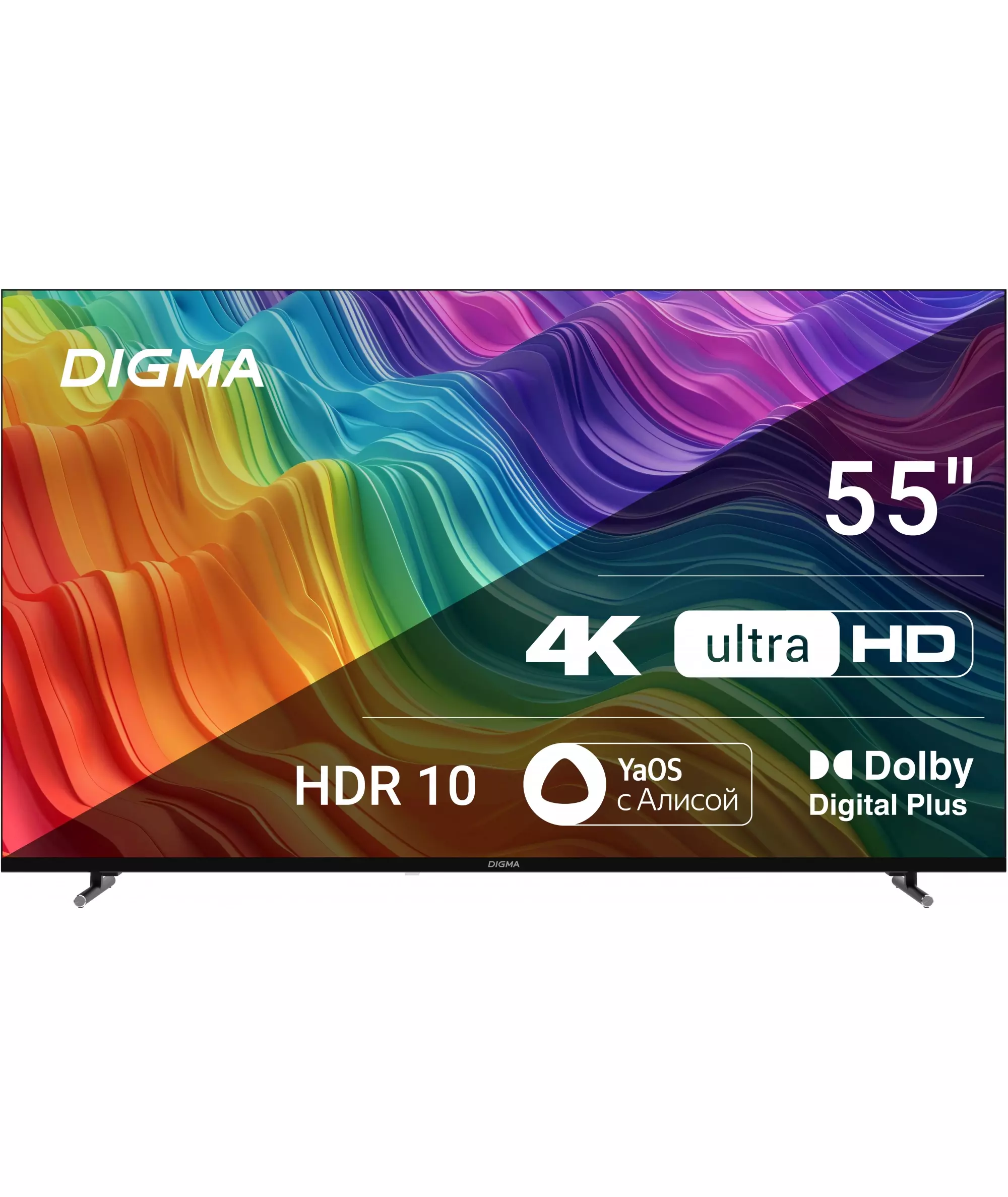 Телевизор Digma DM-LED55UBB33 LED 55" Яндекс.ТВ Frameless Metal черный 4K Ultra HD 60Hz DVB-T DVB-T2 DVB-C DVB-S DVB-S2 USB WiFi Smart TV