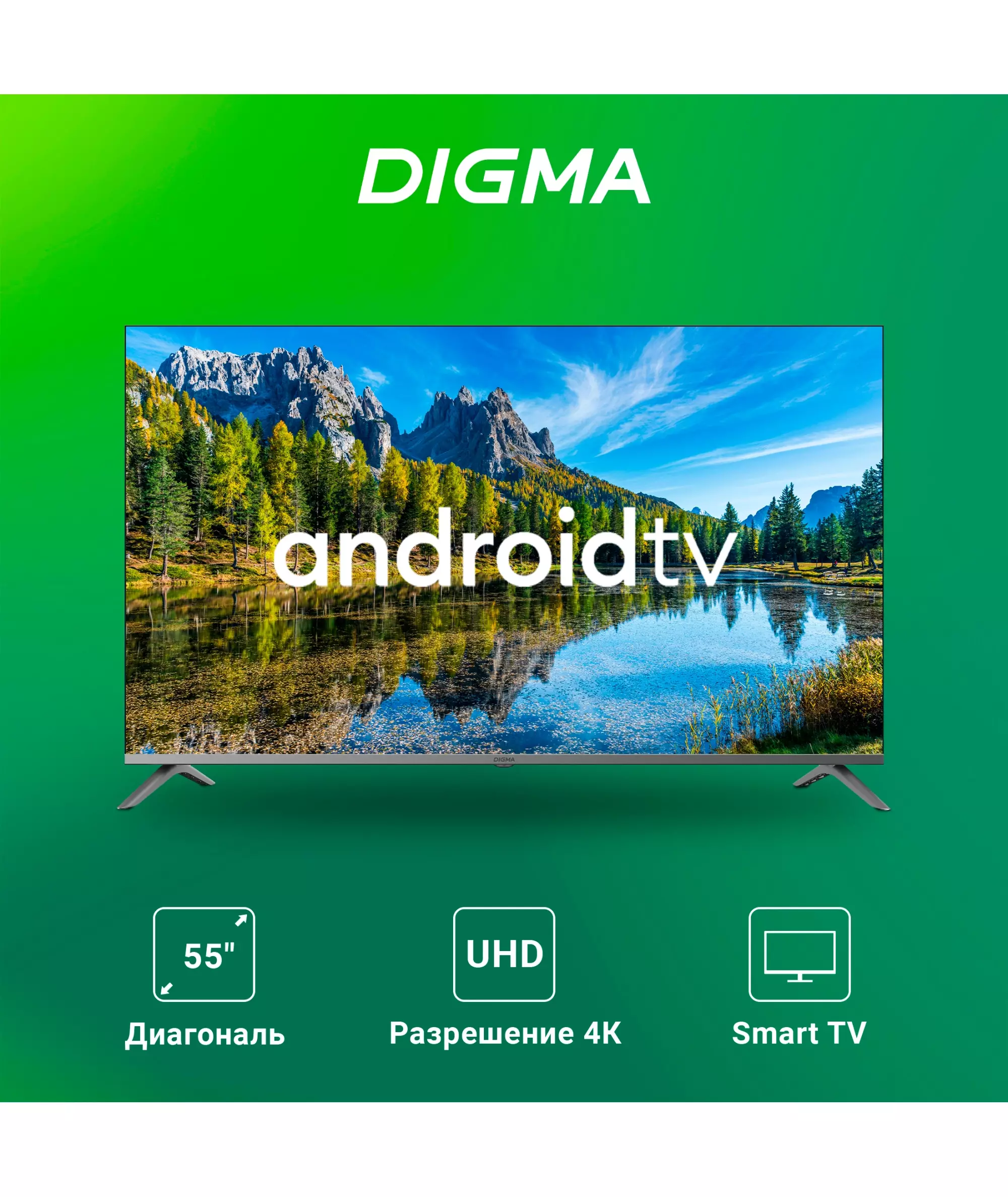 Телевизор Digma DM-LED55UBB41 LED 55" Android TV Frameless Metal темно-серебристый/серебристый 4K Ultra HD 60Hz DVB-T DVB-T2 DVB-C DVB-S DVB-S2 USB WiFi Smart TV