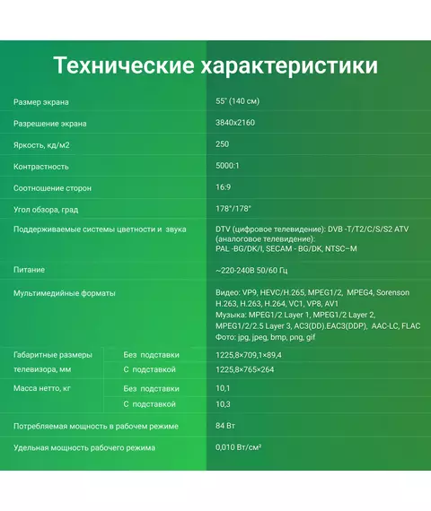 | Размеры без подставки | 1225x709.1x89.4мм |