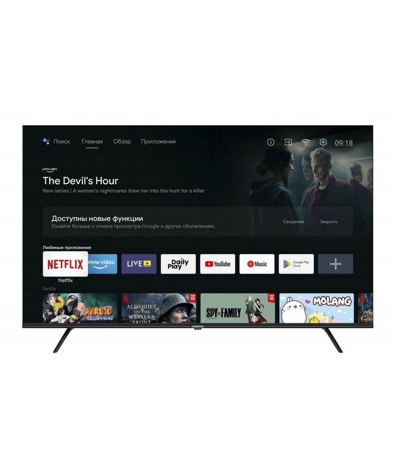 - Стабильно принимать сигналы цифрового и кабельного вещания позволяют встроенные цифровые тюнеры, а с помощью функции SMART TV, на базе современной Official Google Android 10 версии, вы сможете не зависеть от программы вещания, и в любое удобное время смотреть фильмы, сериалы и развлекательные шоу в сети интернет