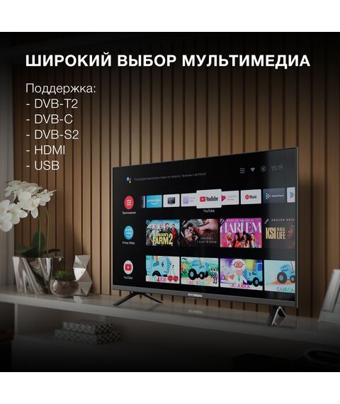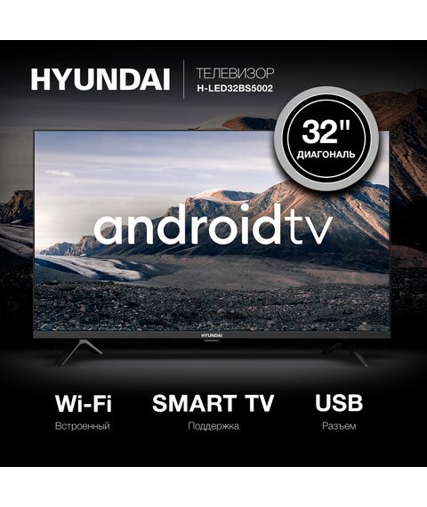 Телевизор LED Hyundai H-LED32BS5002 32" Android TV Frameless черный HD 60Hz DVB-T2 DVB-C DVB-S DVB-S2 USB WiFi Smart TV