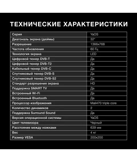 | Разъемы и интерфейсы | CI+/PCMCIA, HDMI, RJ-45 (Ethernet), S/PDIF (коаксиальный), USB Type-A, для наушников |