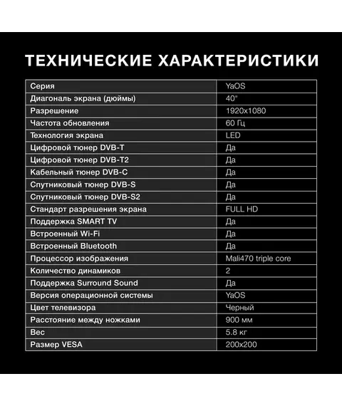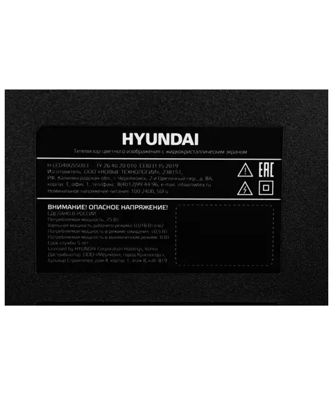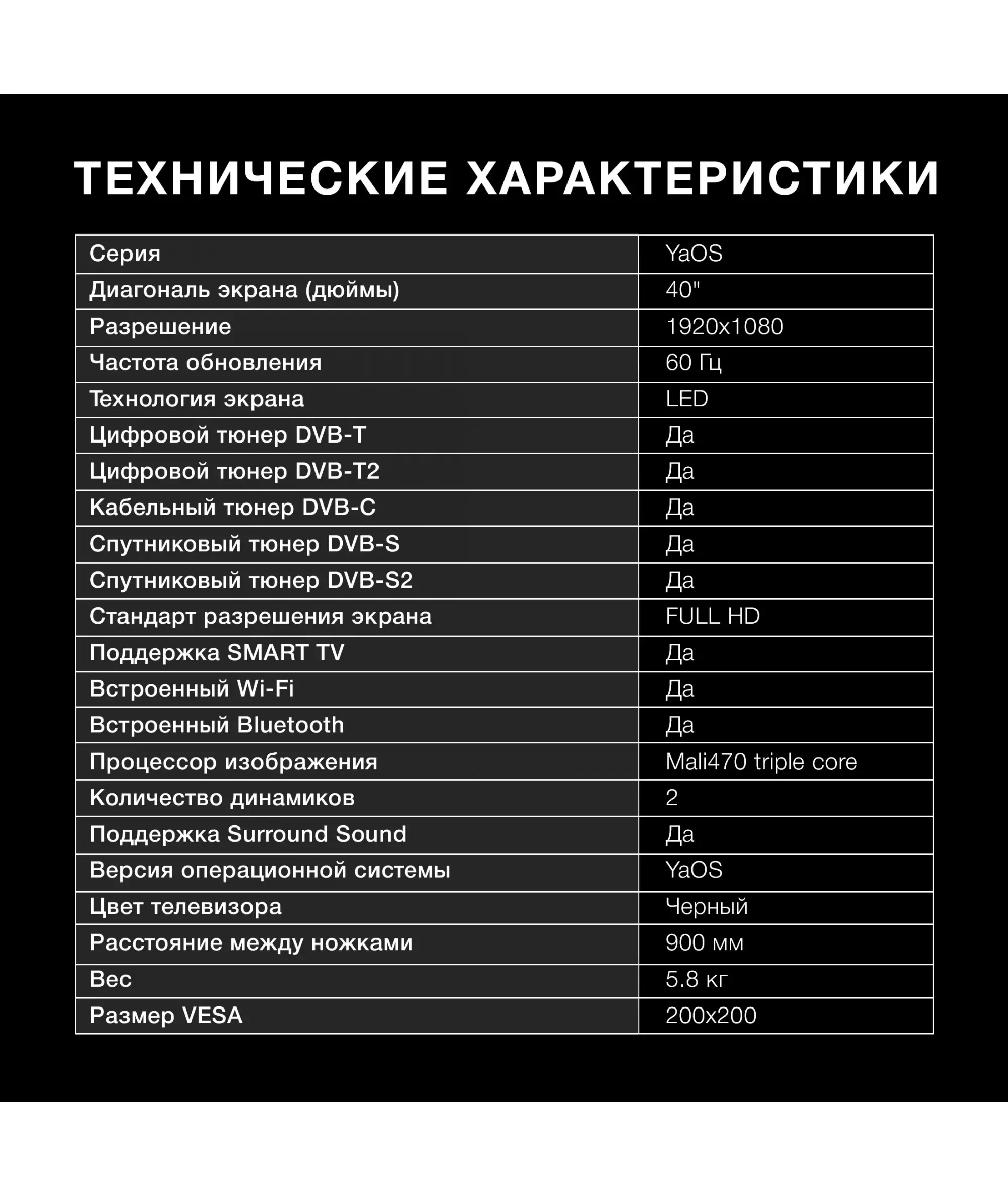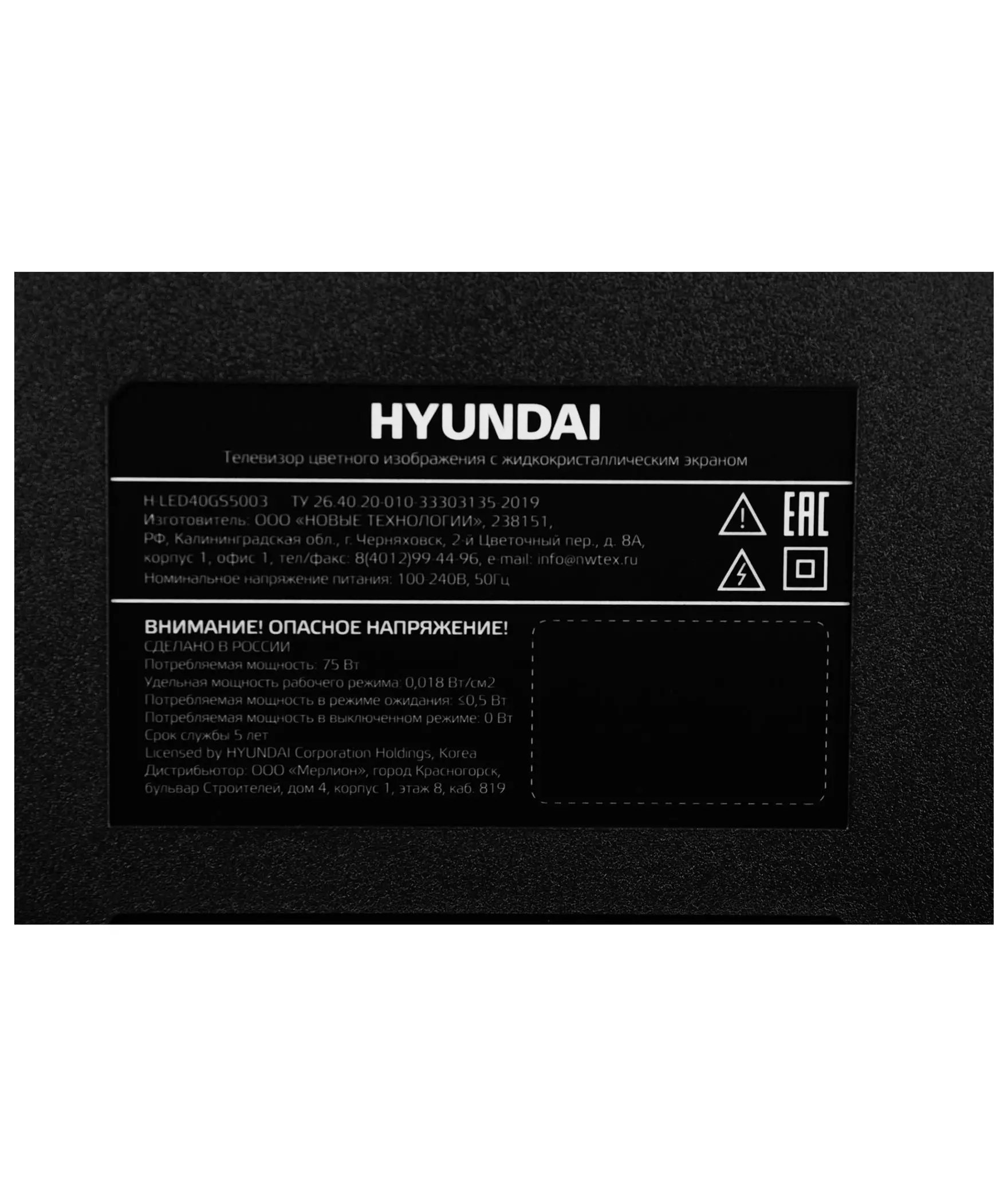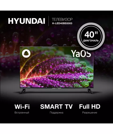 Телевизор LED Hyundai H-LED40BS5003 40" Яндекс.ТВ Frameless черный FULL HD 60Hz DVB-T DVB-T2 DVB-C DVB-S DVB-S2 USB WiFi Smart TV