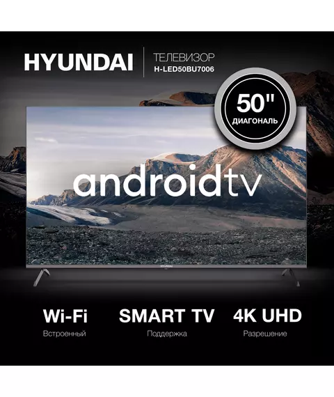 Телевизор Hyundai H-LED50BU7006 LED 50" Android TV Frameless Metal черный 4K Ultra HD 60Hz DVB-T2 DVB-C DVB-S DVB-S2 USB WiFi Smart TV