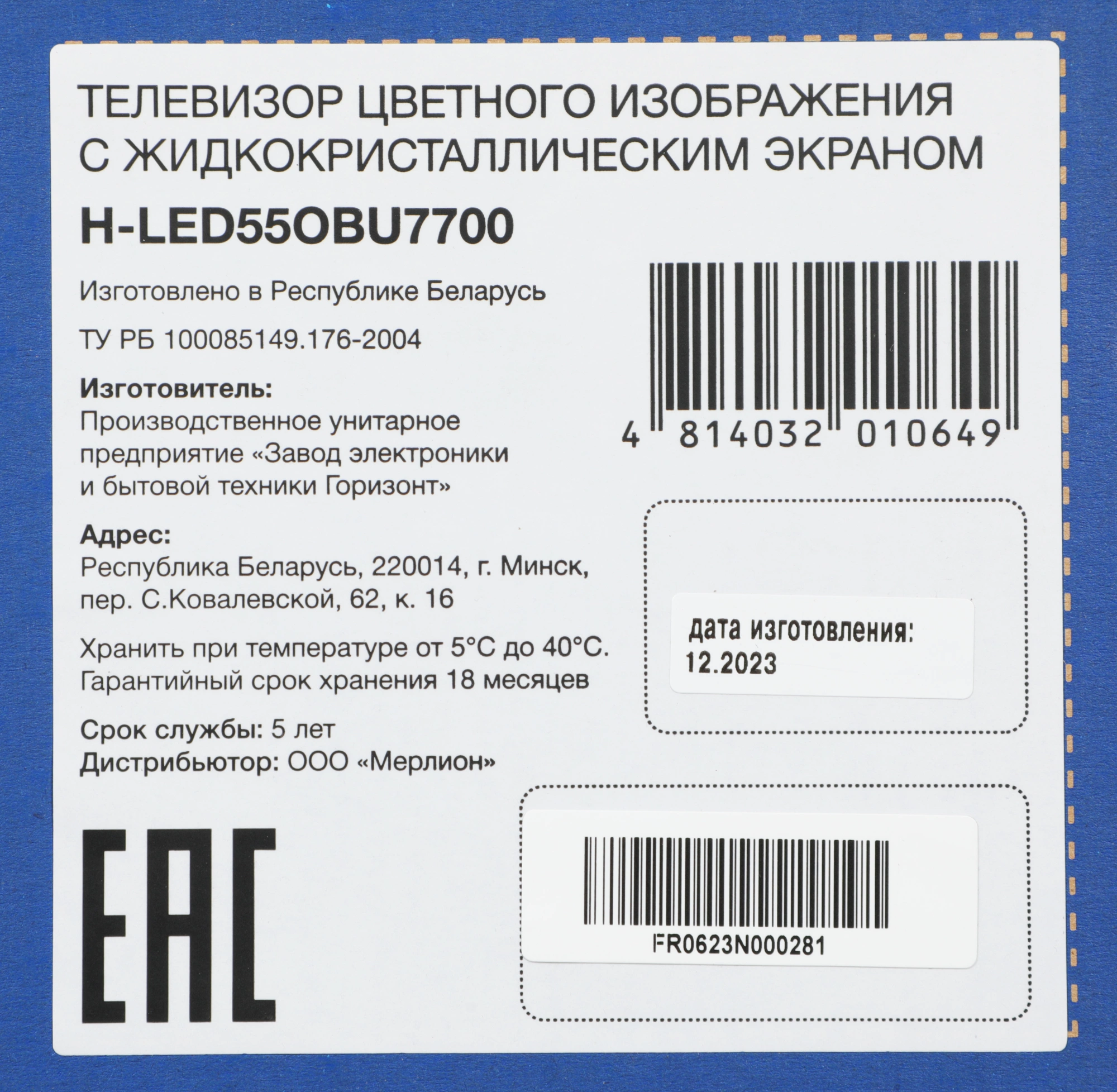 | Срок гарантии | 12 мес. |
