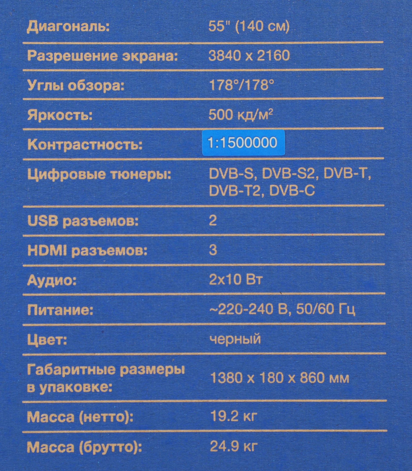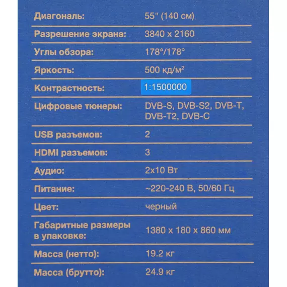 | Диагональ экрана (дюймы) | 55 " |