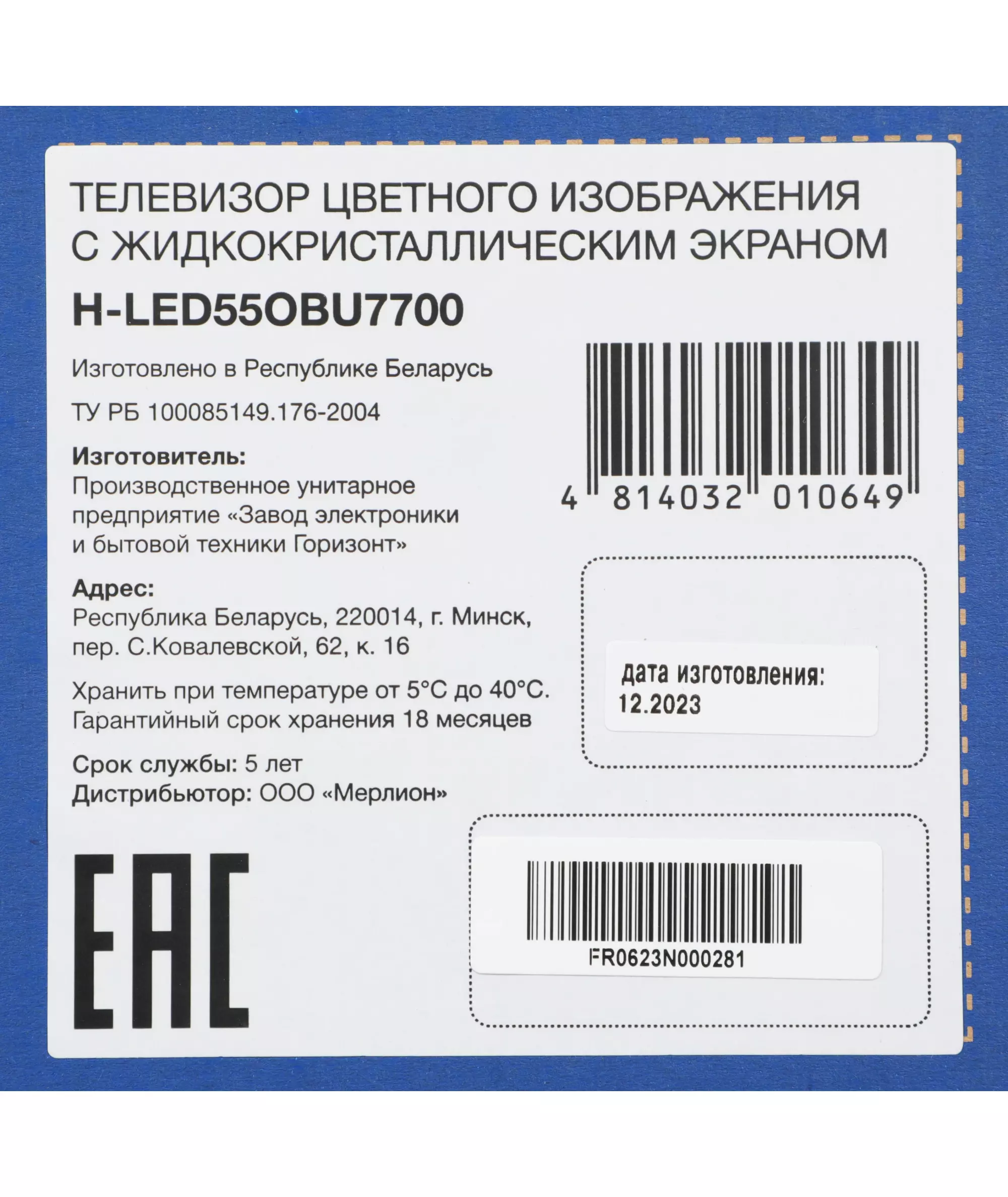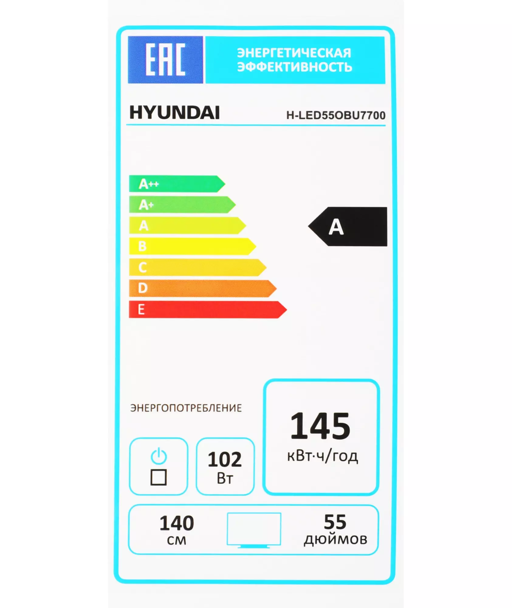 Телевизор Hyundai H-LED55OBU7700 OLED 55" Android TV Frameless черный/черный 4K Ultra HD 120Hz DVB-T DVB-T2 DVB-C DVB-S DVB-S2 USB WiFi Smart TV