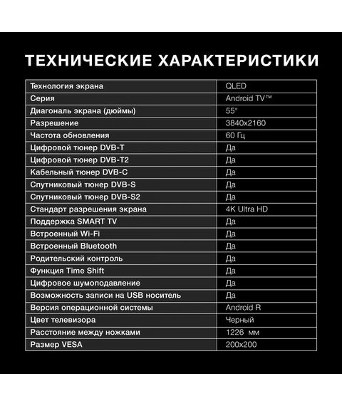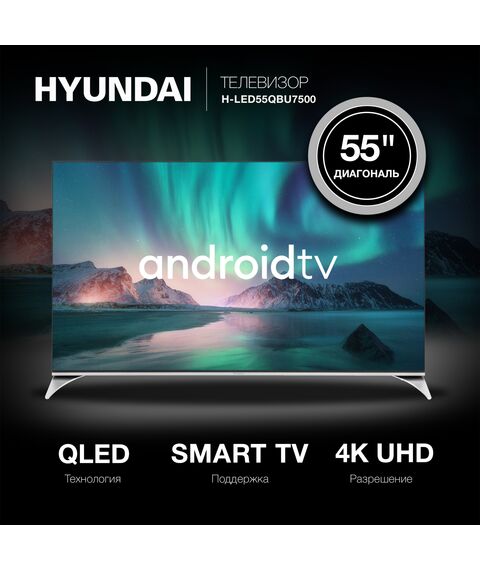 Телевизор Hyundai H-LED55QBU7500 QLED 55" Android TV Frameless черный/серебристый 4K Ultra HD 60Hz DVB-T DVB-T2 DVB-C DVB-S DVB-S2 USB WiFi Smart TV