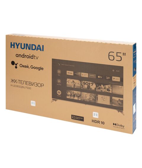 Телевизор QLED Hyundai H-LED65QBU7500 65" Android TV Frameless черный/серебристый 4K Ultra HD 60Hz DVB-T DVB-T2 DVB-C DVB-S DVB-S2 USB WiFi Smart TV