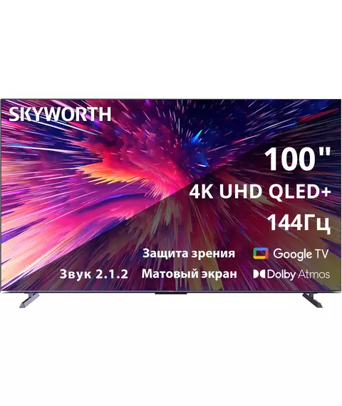 Телевизор Skyworth 100Q79G QLED 100" Google TV Frameless фиолетовый 4K Ultra HD 144Hz DVB-T DVB-T2 DVB-C DVB-S DVB-S2 USB WiFi Smart TV
