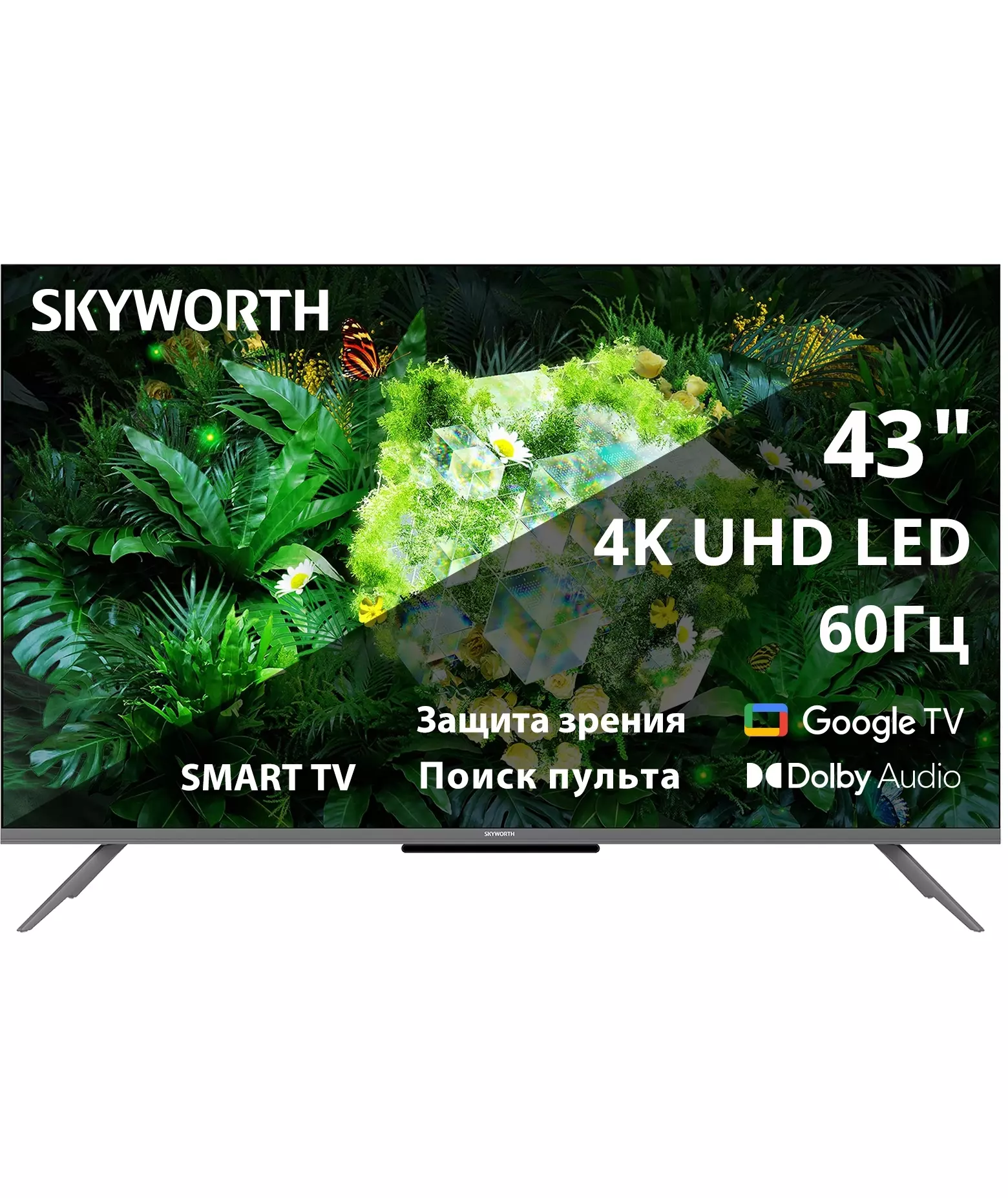 Телевизор LED Skyworth 43G66G 43" Google TV Frameless черный/серый 4K Ultra HD 60Hz DVB-T DVB-T2 DVB-C DVB-S DVB-S2 USB WiFi Smart TV