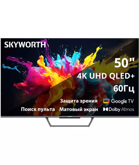 Телевизор QLED Skyworth 50Q67G 50" Google TV Frameless черный/серый 4K Ultra HD 60Hz DVB-T DVB-T2 DVB-C DVB-S DVB-S2 USB WiFi Smart TV