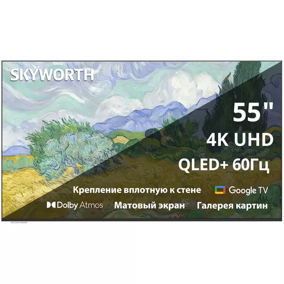 | Особенности | Арт-режим; Матовый экран; Корпус толщиной 3 см с креплением вплотную к стене (в комплекте); Датчик освещенности; Трансляция экрана смартфона на ТВ; Режим Filmmaker Mode; Технологии защиты зрения: Low Blue Light (сниженный синий свет), Flicker Free (антимерцание); |