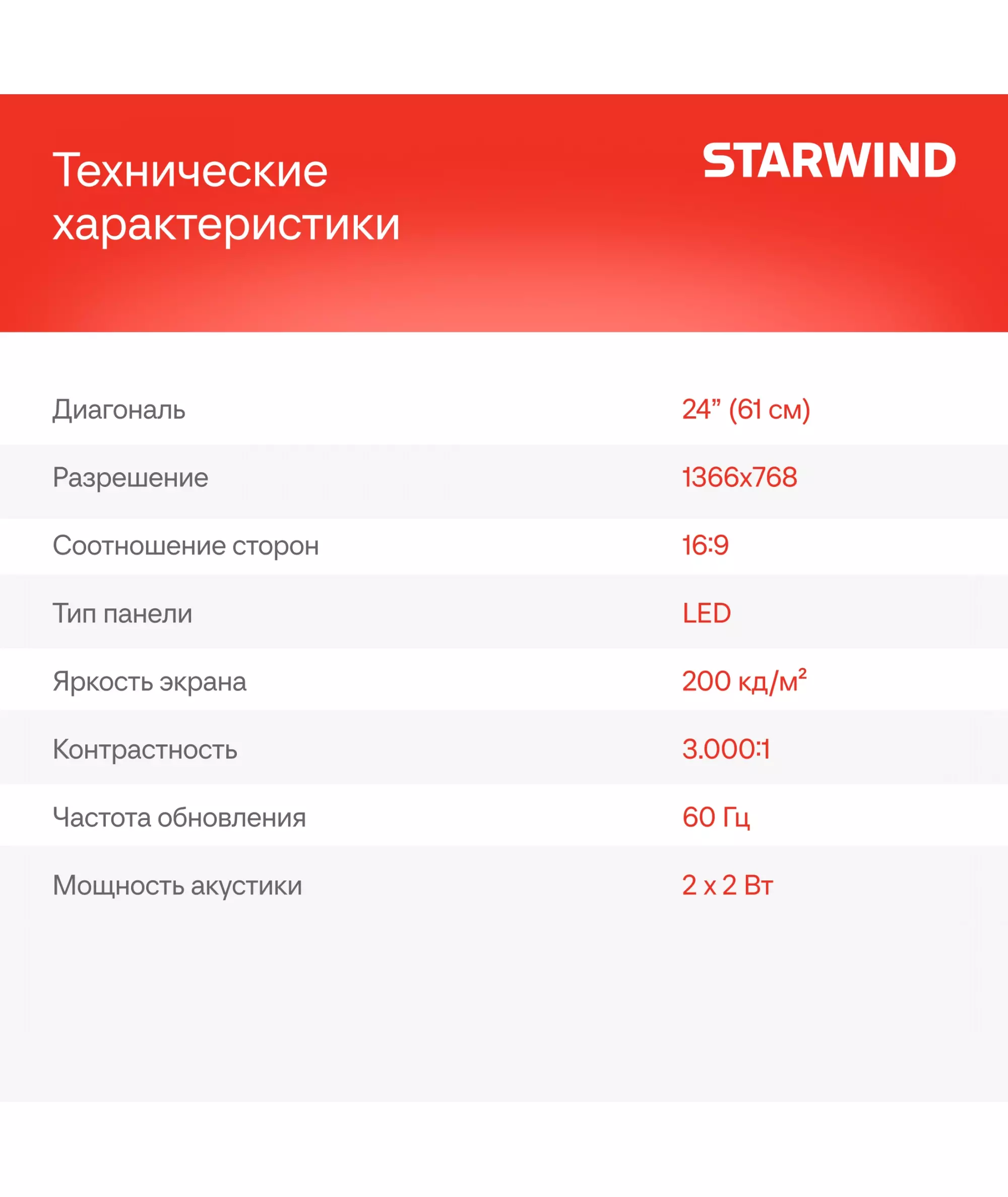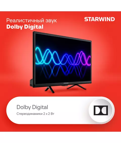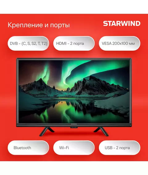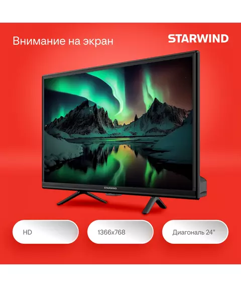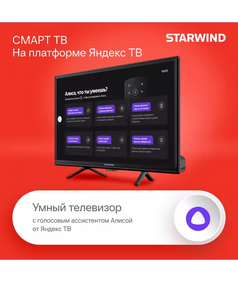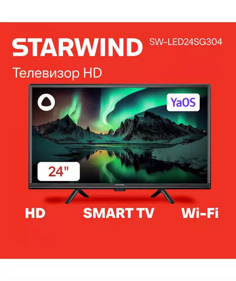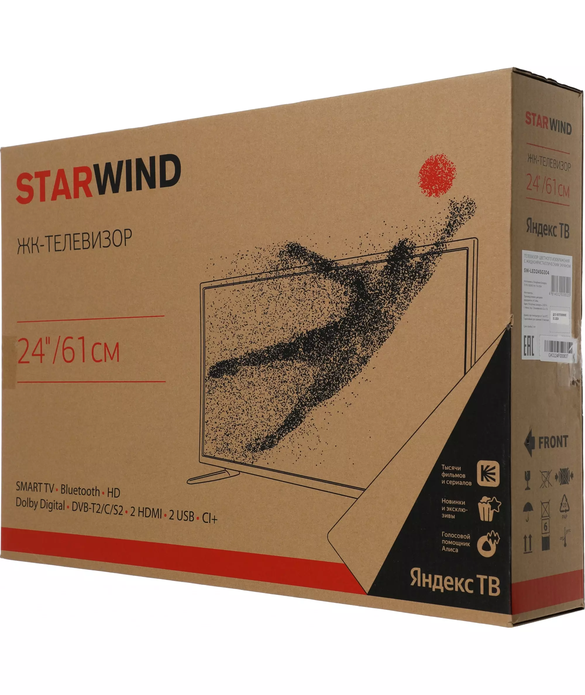 Телевизор LED STARWIND SW-LED24SG304 24" Яндекс.ТВ Slim Design черный/черный HD 60Hz DVB-T DVB-T2 DVB-C DVB-S DVB-S2 USB WiFi Smart TV