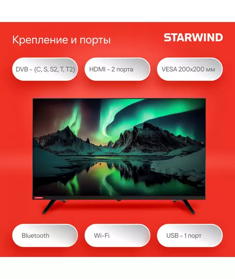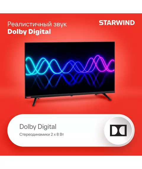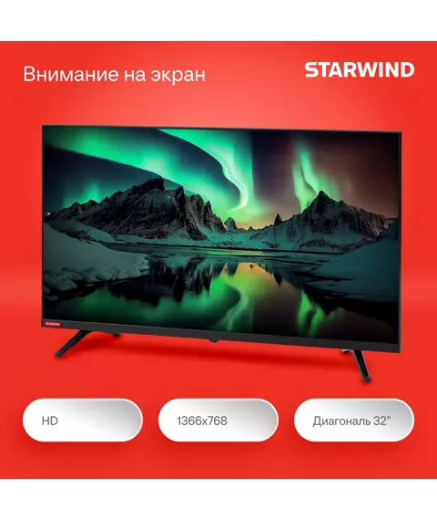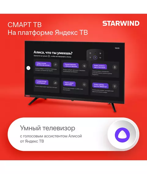 Телевизор STARWIND SW-LED32SG300 LED 32" Яндекс.ТВ Frameless черный/черный HD 60Hz DVB-T DVB-T2 DVB-C DVB-S DVB-S2 USB WiFi Smart TV