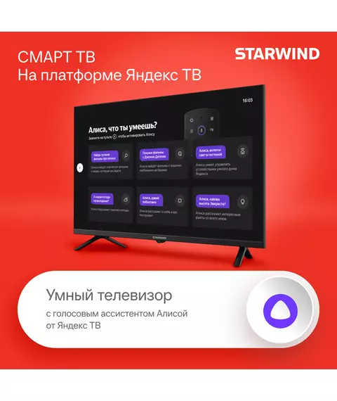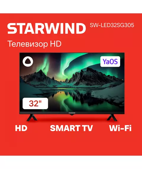 Телевизор LED STARWIND SW-LED32SG305 32" Яндекс.ТВ Frameless черный/черный HD 60Hz DVB-T DVB-T2 DVB-C DVB-S DVB-S2 USB WiFi Smart TV