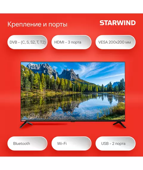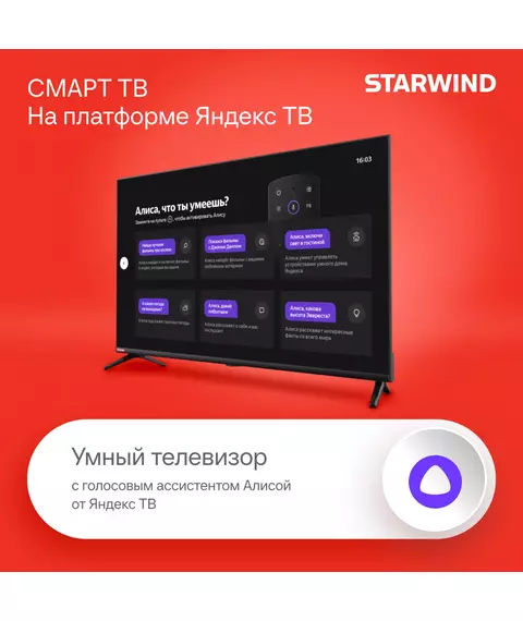 Телевизор LED STARWIND SW-LED40SG300 40" Яндекс.ТВ Frameless черный FULL HD 60Hz DVB-T DVB-T2 DVB-C DVB-S DVB-S2 USB WiFi Smart TV