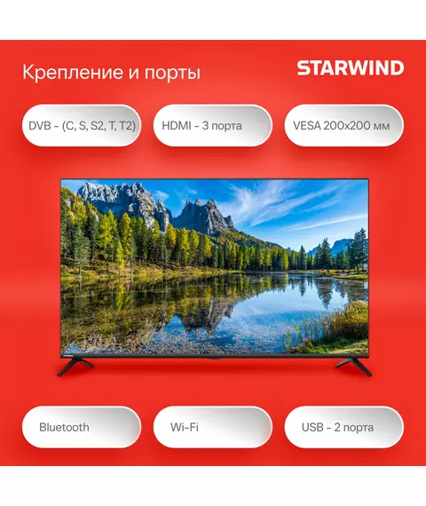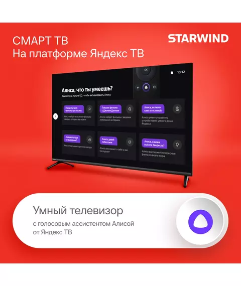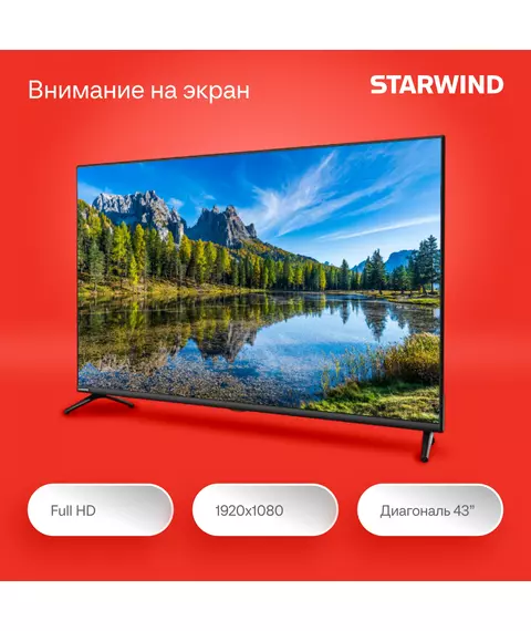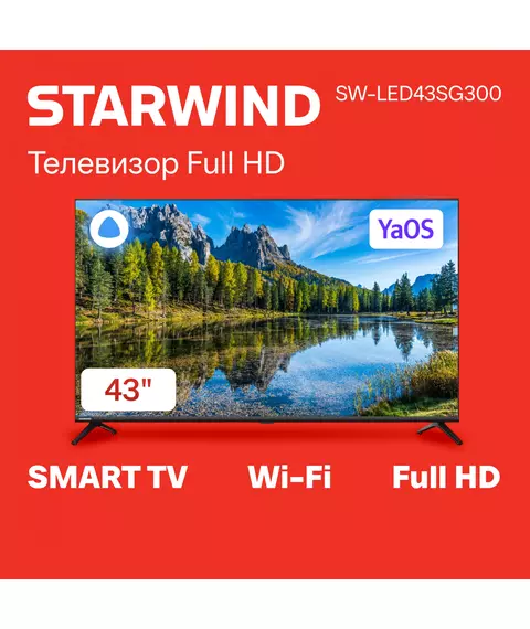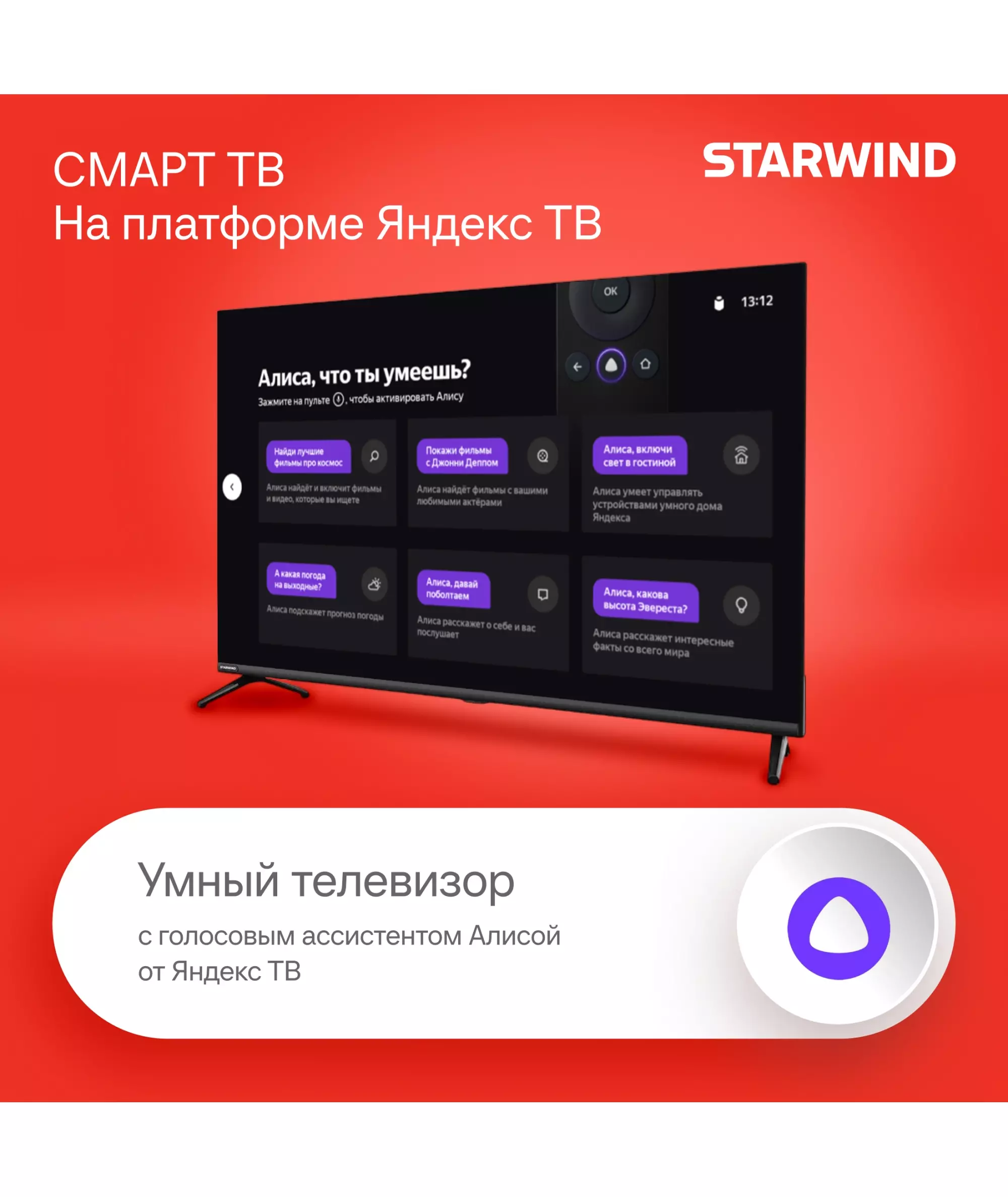 Телевизор LED STARWIND SW-LED43SG300 43" Яндекс.ТВ Frameless черный FULL HD 60Hz DVB-T DVB-T2 DVB-C DVB-S DVB-S2 USB WiFi Smart TV