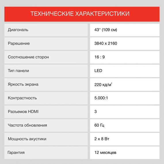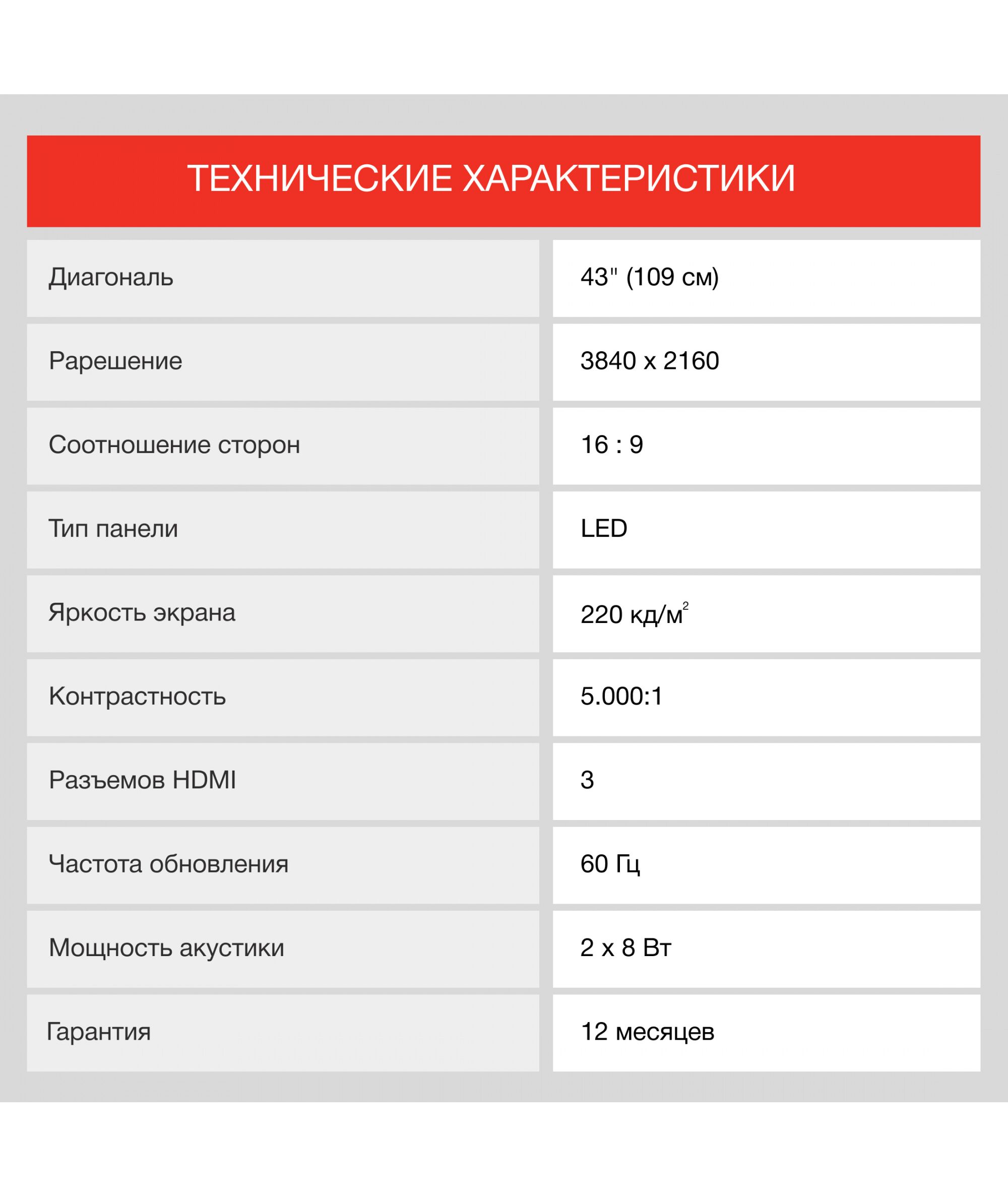 Телевизор STARWIND SW-LED43UG400 LED 43" Яндекс.ТВ стальной 4K Ultra HD 60Hz DVB-T DVB-T2 DVB-C DVB-S DVB-S2 USB WiFi Smart TV