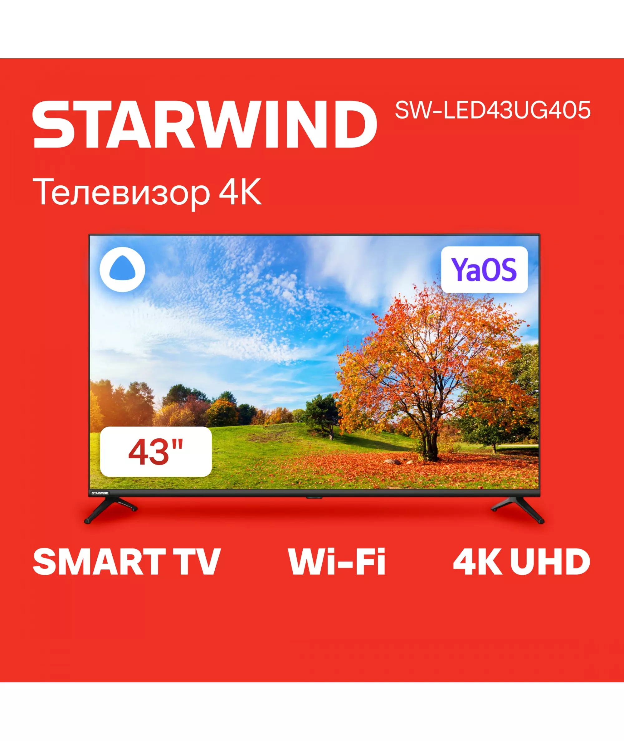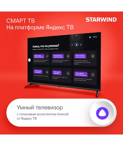 Телевизор STARWIND SW-LED43UG405 LED 43" Яндекс.ТВ Frameless черный 4K Ultra HD 60Hz DVB-T DVB-T2 DVB-C DVB-S DVB-S2 USB WiFi Smart TV