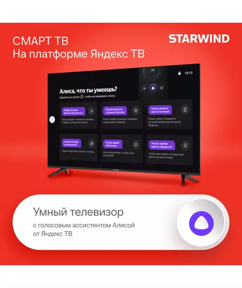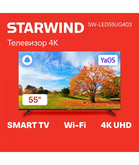 Телевизор STARWIND SW-LED55UG403 LED 55" Яндекс.ТВ Frameless черный 4K Ultra HD 60Hz DVB-T DVB-T2 DVB-C DVB-S DVB-S2 USB WiFi Smart TV