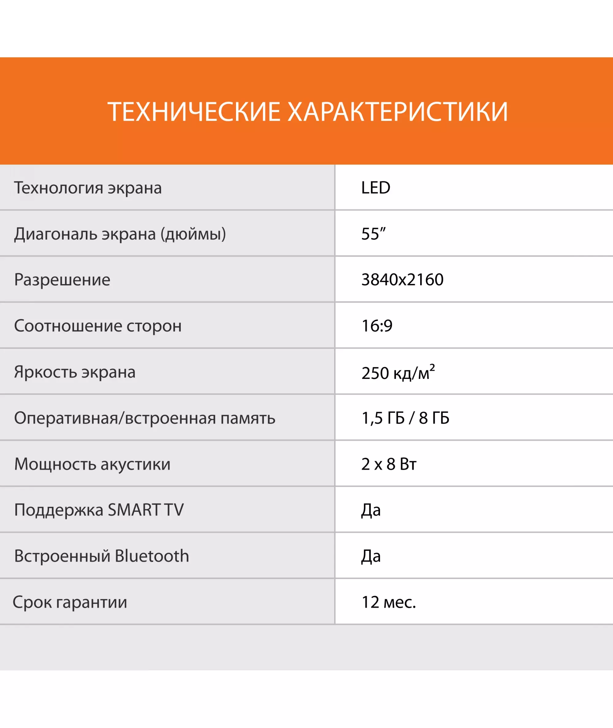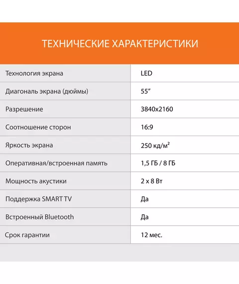 | Диагональ экрана (дюймы) | 55 " |