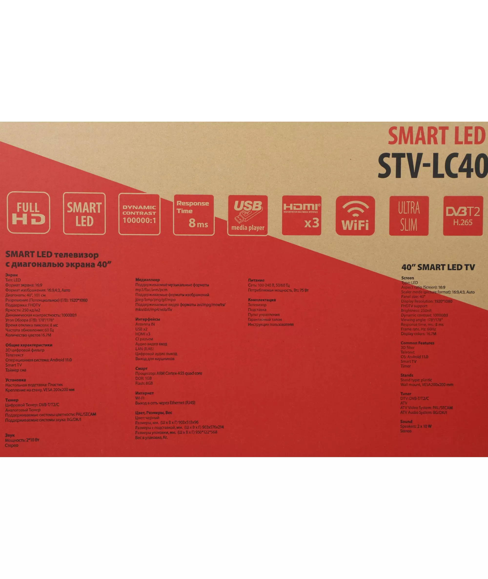 Телевизор Supra STV-LC40ST0045F LED 40" черный FULL HD 60Hz DVB-T DVB-T2 DVB-C WiFi Smart TV