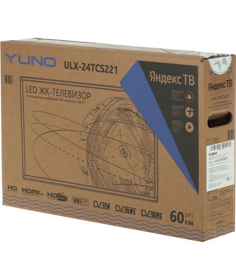 Телевизор YUNO ULX-24TCS221 LED 24" Яндекс.ТВ черный HD 50Hz DVB-T2 DVB-C DVB-S DVB-S2 WiFi Smart TV