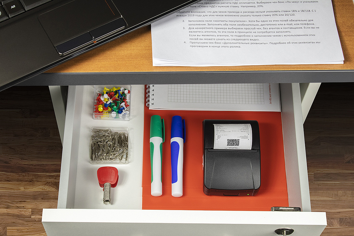 Несмотря на небольшие габариты, у решения полноразмерная кассовая лента длиной 35 м (47мм в диаметре) – это до 200 пробитых чеков на одном мотке ленты.Экономит место