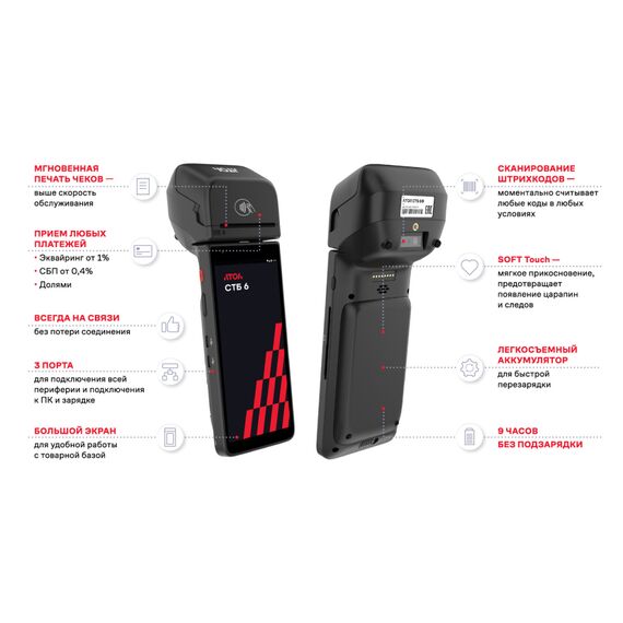 Смарт-терминал АТОЛ СТБ 6 с автоматическим тарифом SIGMA и ИТС, без ФН, 5.0 [63170]