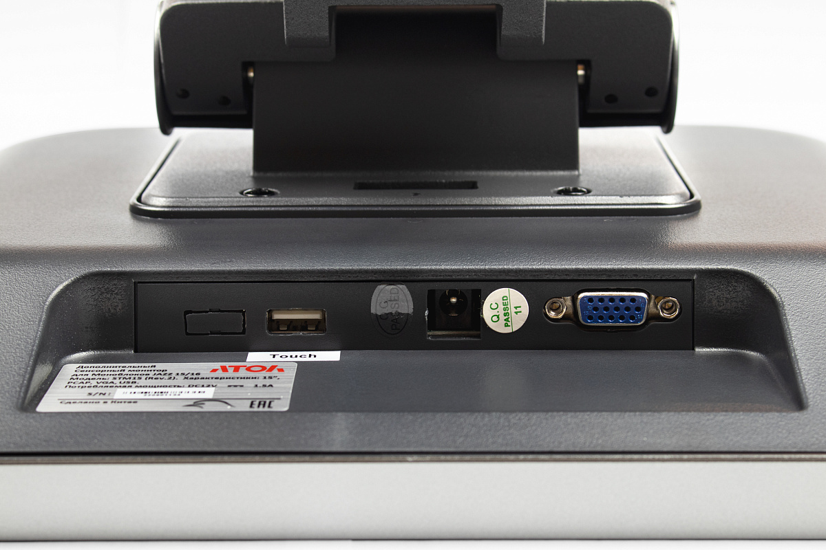 Монитор совместим с POS-терминалами АТОЛ Jazz 15 Pro и Jаzz 16 Pro или же его можно закрепить на кассе самообслуживания с использованием специального VESA-крепления.
