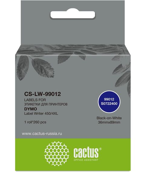 Этикетки Cactus CS-LW-99012 89x36мм черный белый 260шт/рул Dymo Label Writer 450/4XL