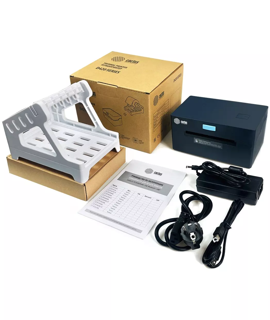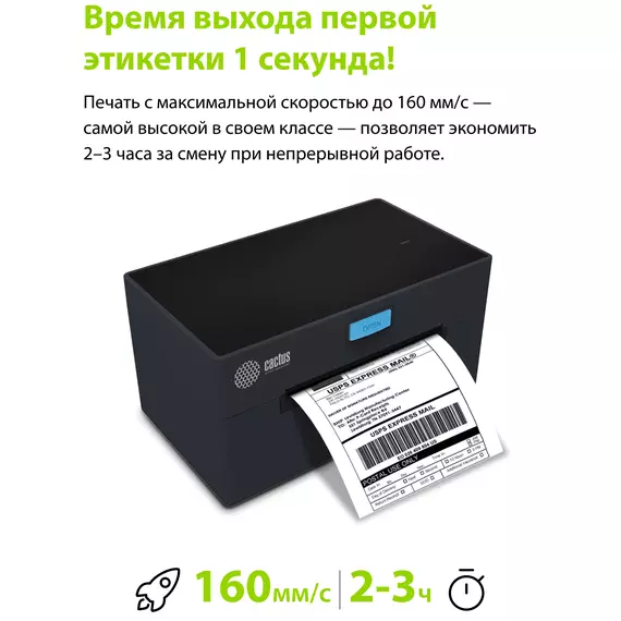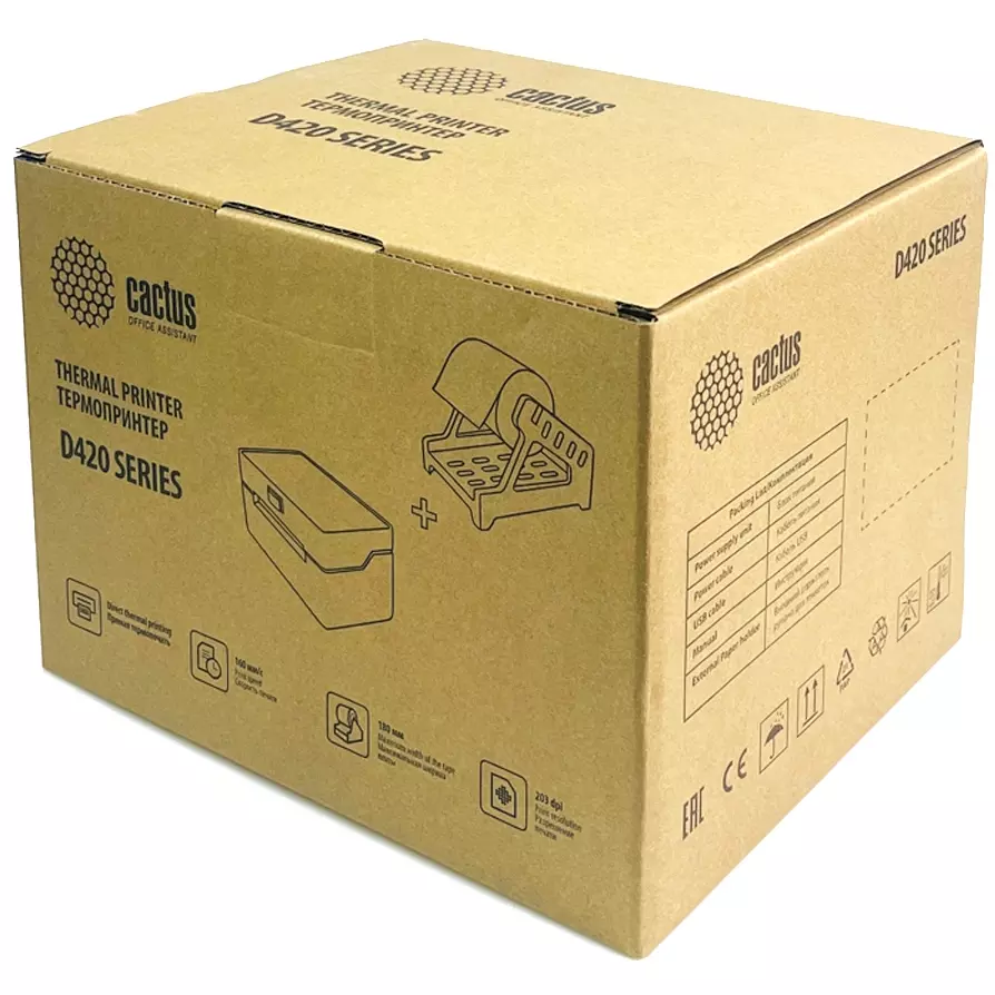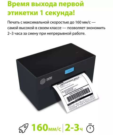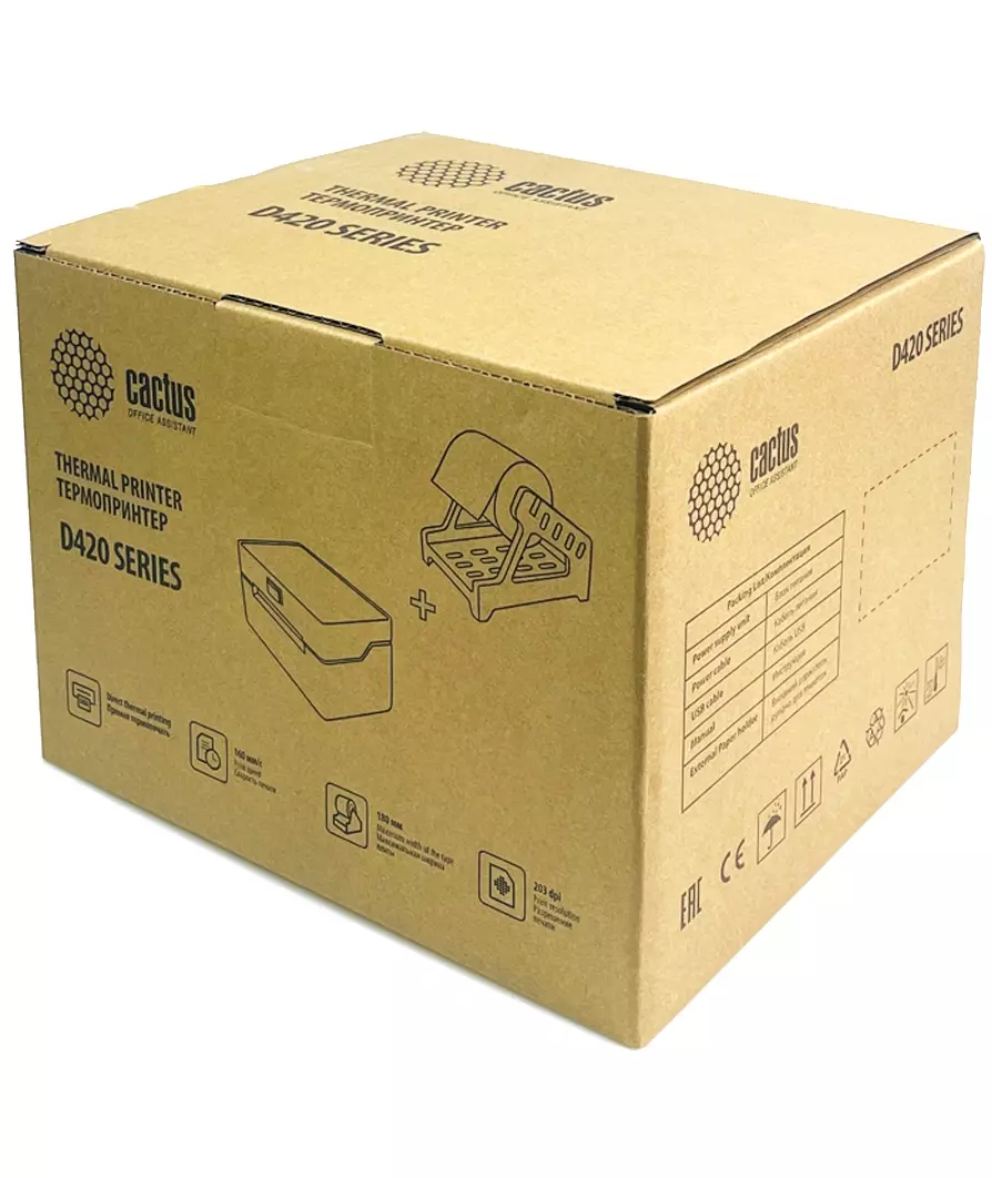 Термопринтер Cactus CS-TP-D420U +держатель 203dpi 160мм/с/USB для печ.этик. черный