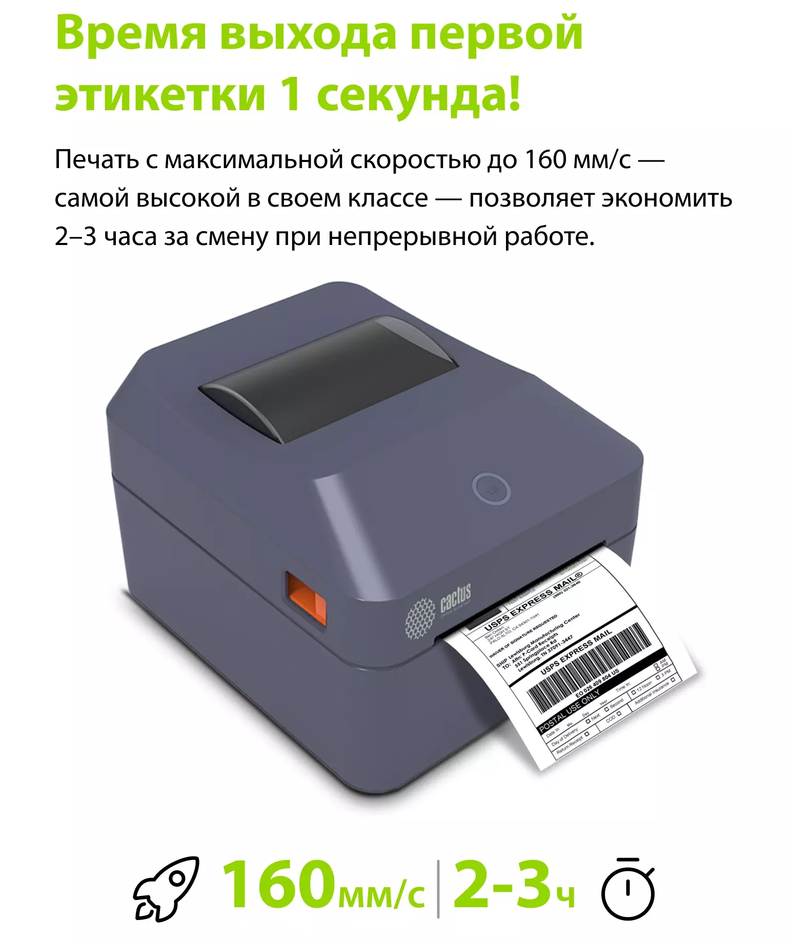 Термопринтер Cactus CS-TP-D430U 203dpi 160мм/с USB для печ.этик. черный