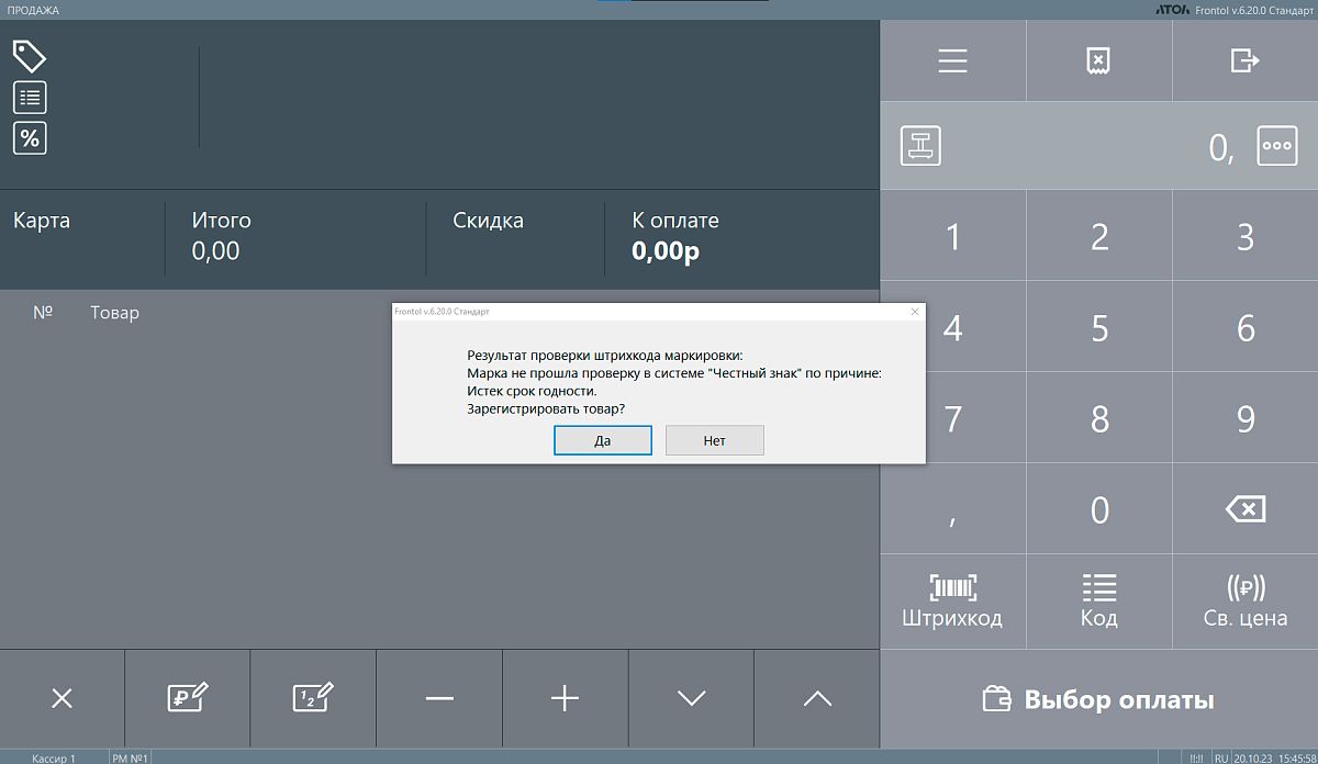 - Интеграция с Frontol xPOS (продажа алкоголя), Frontol 6