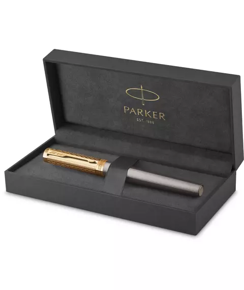 Ручка роллер Parker Ingenuity Pioneers T571 Arrow Grey GT F черная, подарочная коробка [2200951]
