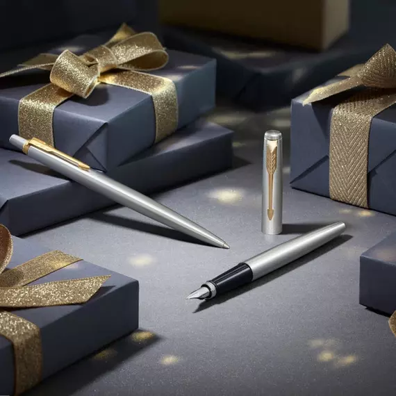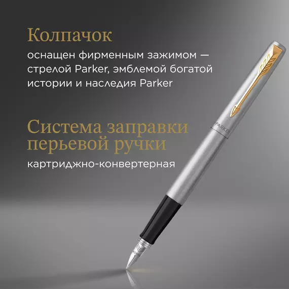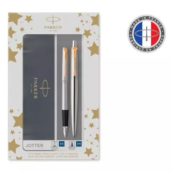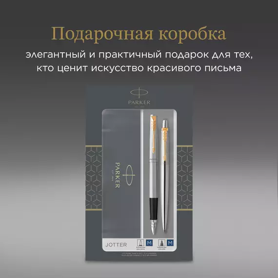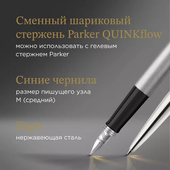 Набор ручек Parker Jotter Core FK691 Stainless Steel GT сталь нержавеющая подар.кор. ручка перьевая, ручка шариковая, сменный стержень 1стерж. стреловидный пиш. наконечник кругл. [2093257]