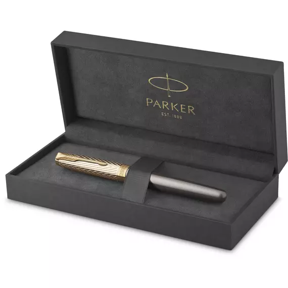 Ручка роллер Parker Sonnet Pioneers T542 Arrow Grey GT F черная, подарочная коробка [2201040]