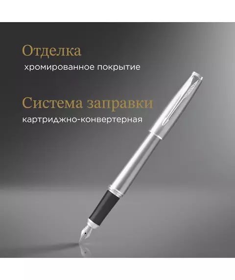 Ручка перьевая Parker Urban Core F200 Metro Metallic CT M сталь нержавеющая, подарочная коробка [1931605]