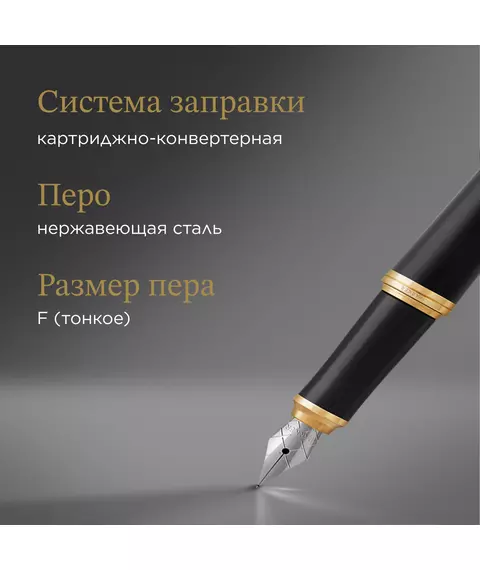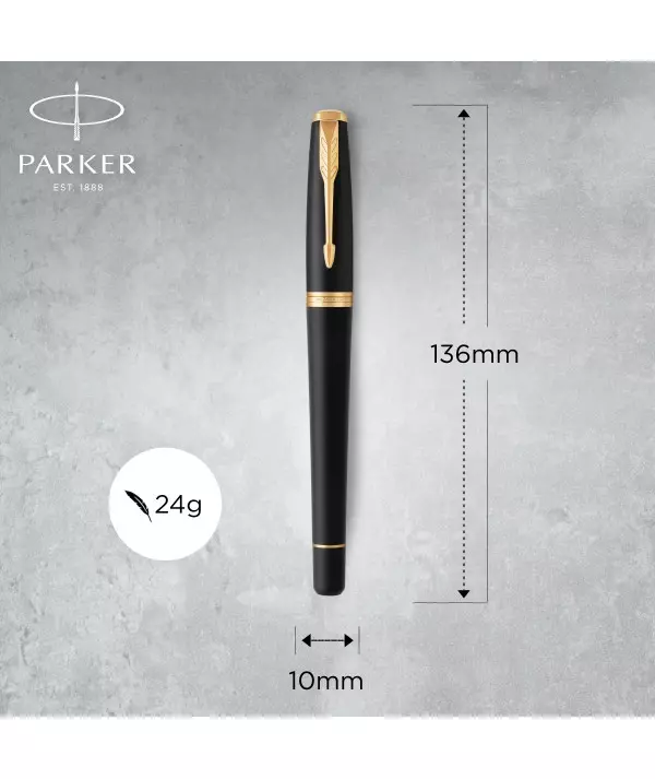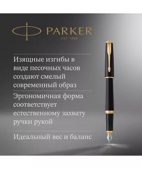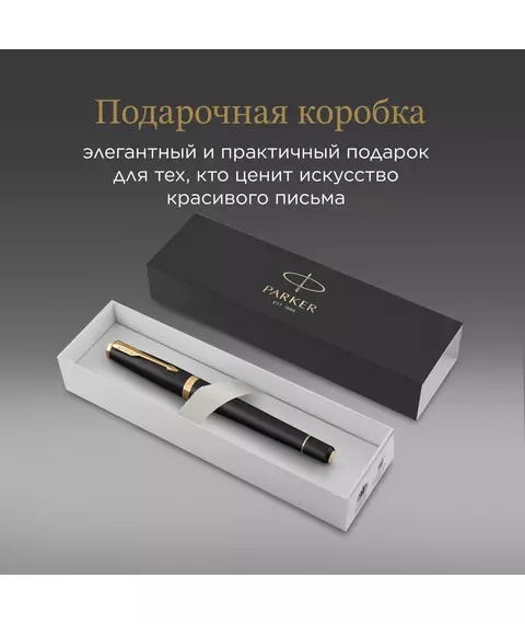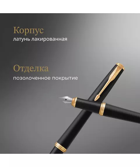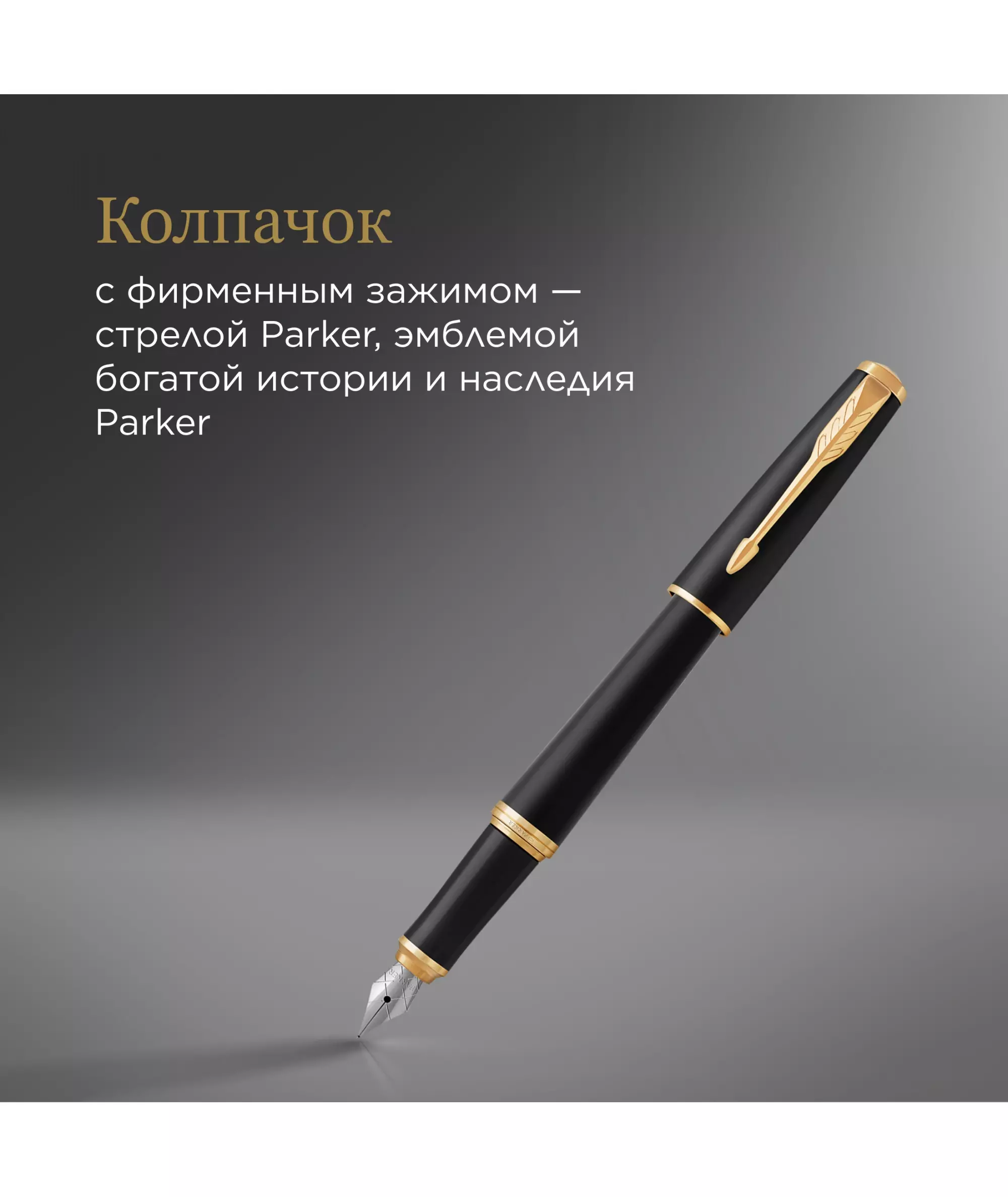 Приглушенный черный лак с пудровым оттенком на корпусе ручки, отлично дополняется яркими позолоченными деталями отделки и фирменным клипом PARKER в виде стрелы. Прочное перо из нержавеющей стали с гравировкой обеспечивает надежное и индивидуальное письмо.