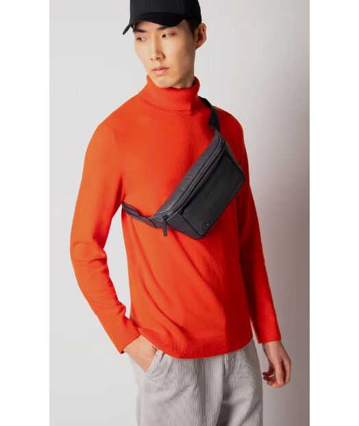 Выполнена из мелкозернистой телячьей кожи с черной окантовкой. Имеет одно отделение, внешние карманы и внутренний отсек для телефона. Сумку можно носить, как на поясе, так и через плечо. Несмотря на компактные размеры, сумка достаточно вместительна и имеет отсек для планшета Ipad mini.