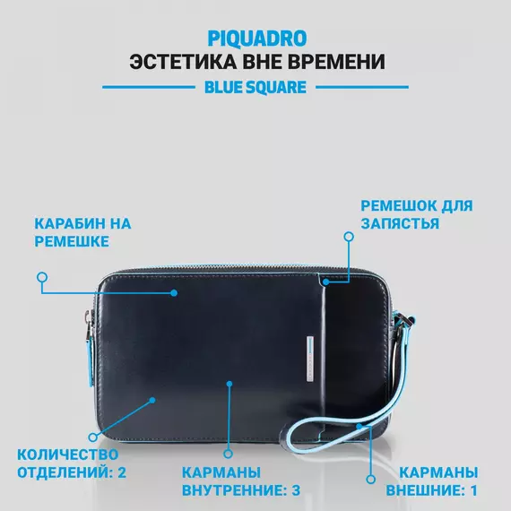 Клатч мужской Piquadro Blue Square синий натур.кожа [AC4221B2/BLU2]