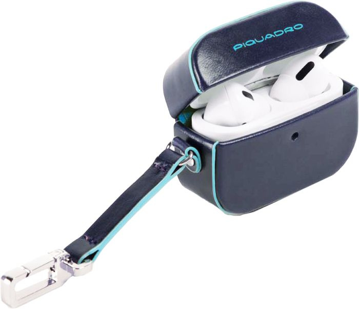 Стильный кожаный чехол от Piquadro для AirPods Pro. Изготовлен из высококачественной телячьей кожи с фирменным голубым кантом.