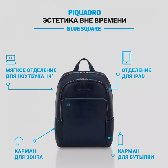 Рюкзак Piquadro Blue Square синий кожа [CA3214B2/BLU2]