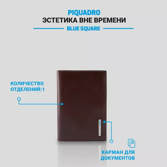Обложка для паспорта Piquadro Blue Square коричневый натур.кожа [PP5255B2/MO]